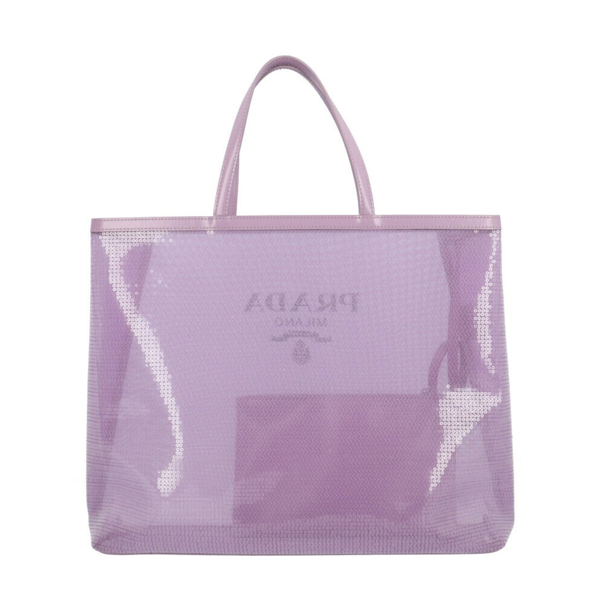 Prada mesh tote bag with sequins, 1BG416, purple, for women.