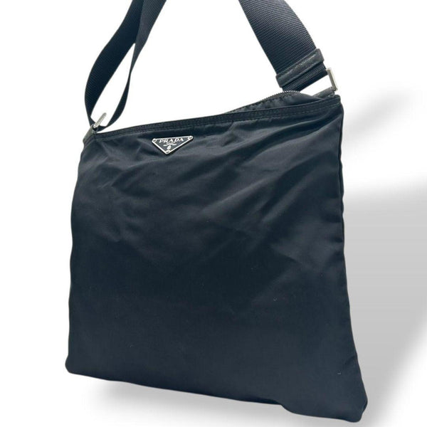 PRADA Prada Shoulder Bag, Black Nylon, Triangle Logo Plate, Crossbody, Silver Hardware, Men\'s and Women\'s