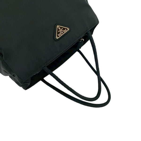PRADA Prada Triangle Logo Silver Plated Tessuto Nylon Handbag Mini Tote Bag Black 57237