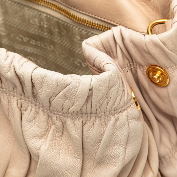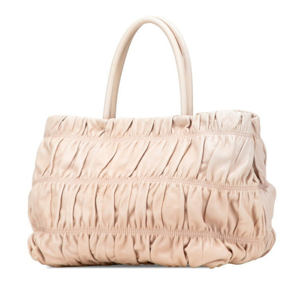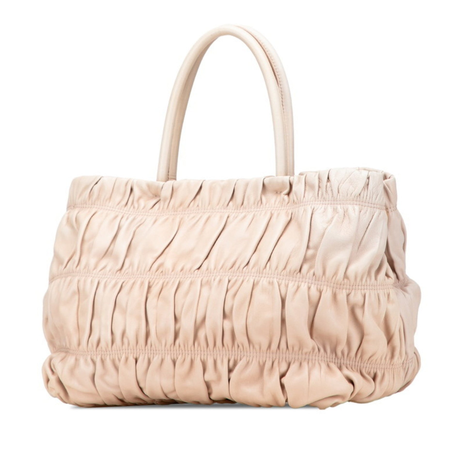 Prada Ribbon Tote Bag/Shoulder Bag, 2-Way, BN1932, Beige/Pink Beige Leather, Women\'s, PRADA