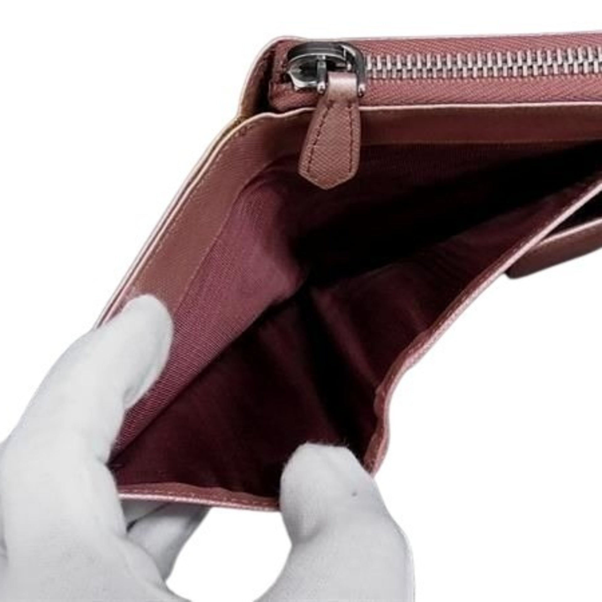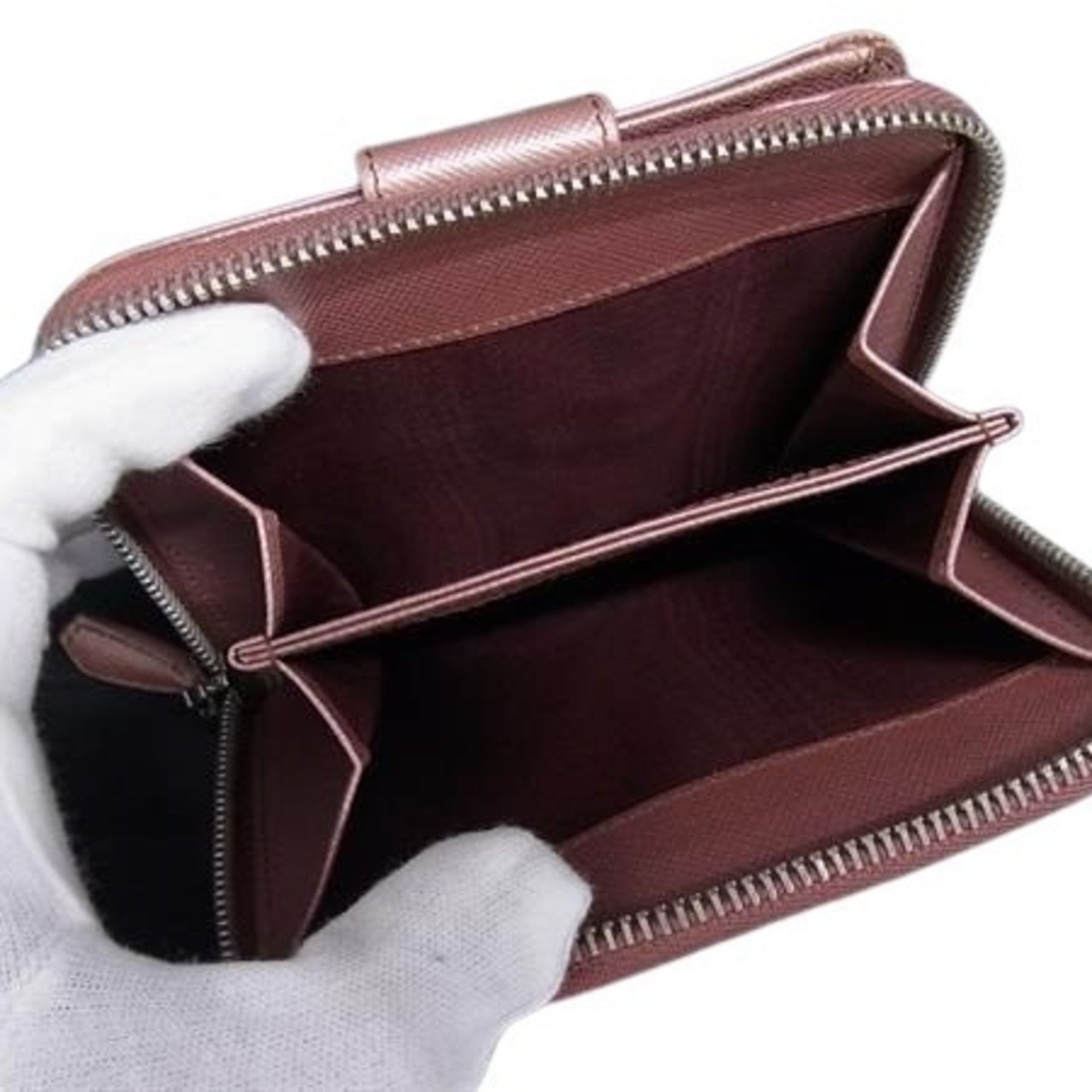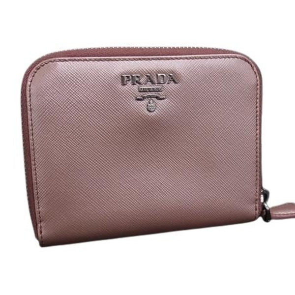 PRADA Saffiano 1M0605 Pink Metallic Leather Women\'s Bifold Long Wallet