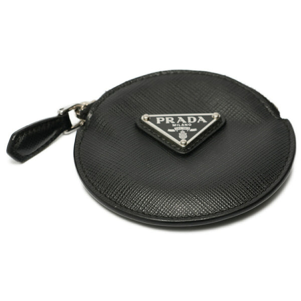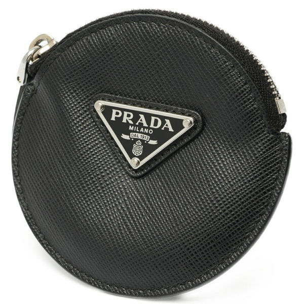 PRADA Saffiano Triangle Coin Case 1MM006 Leather Black 70234