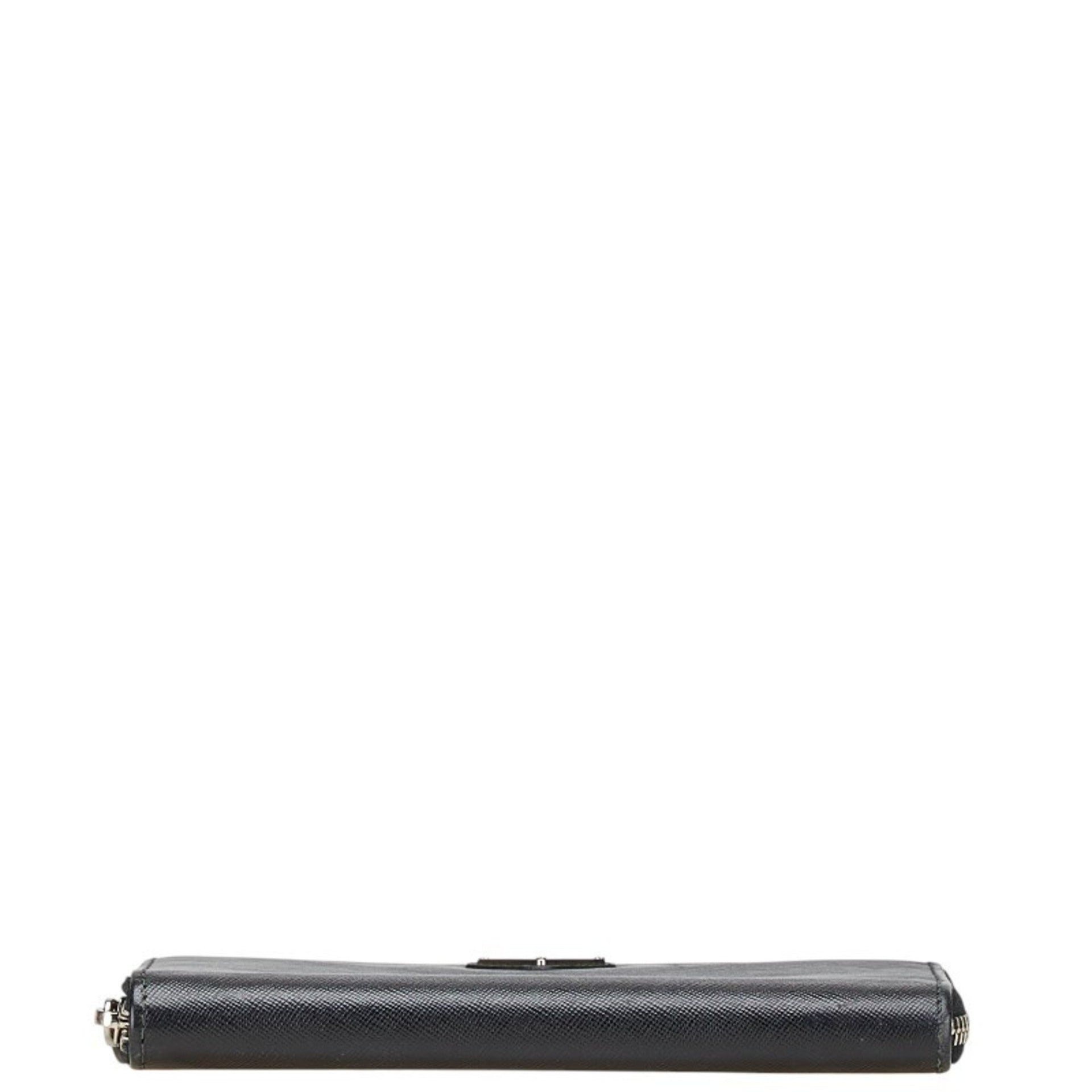 Prada Triangle Logo Plate Long Wallet Round Zipper Black Leather Men\'s PRADA