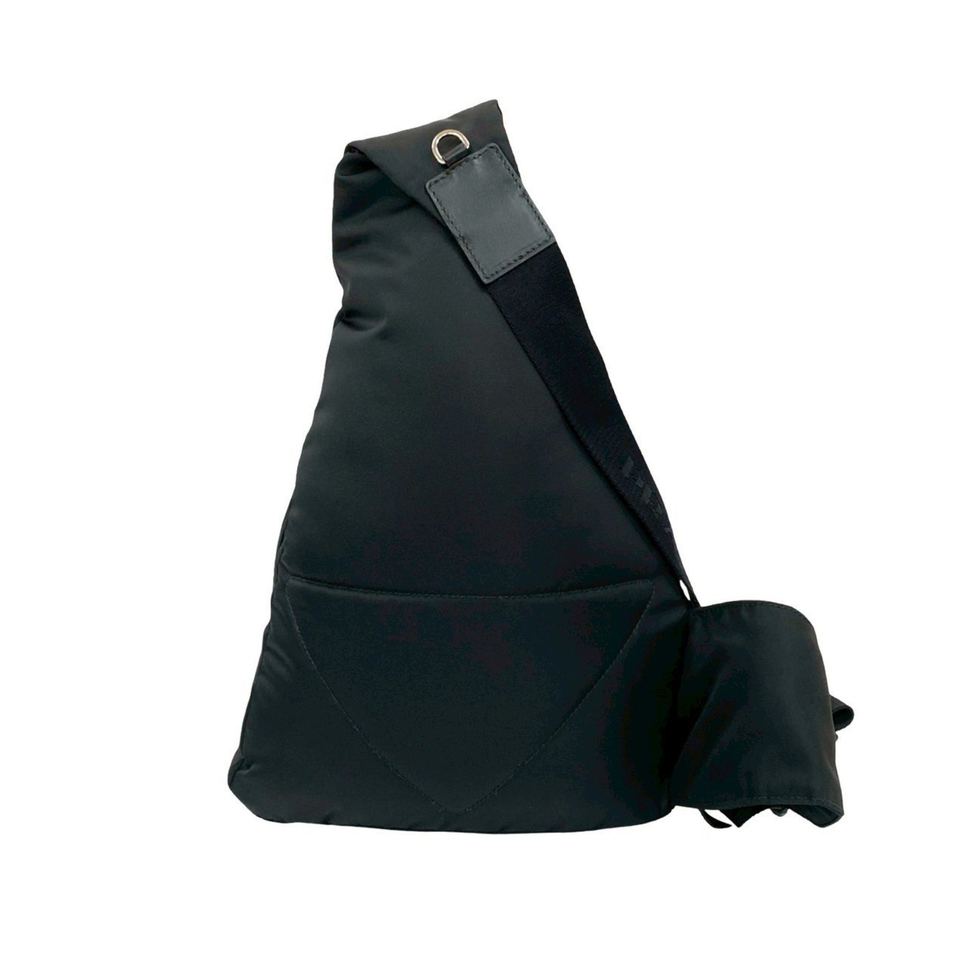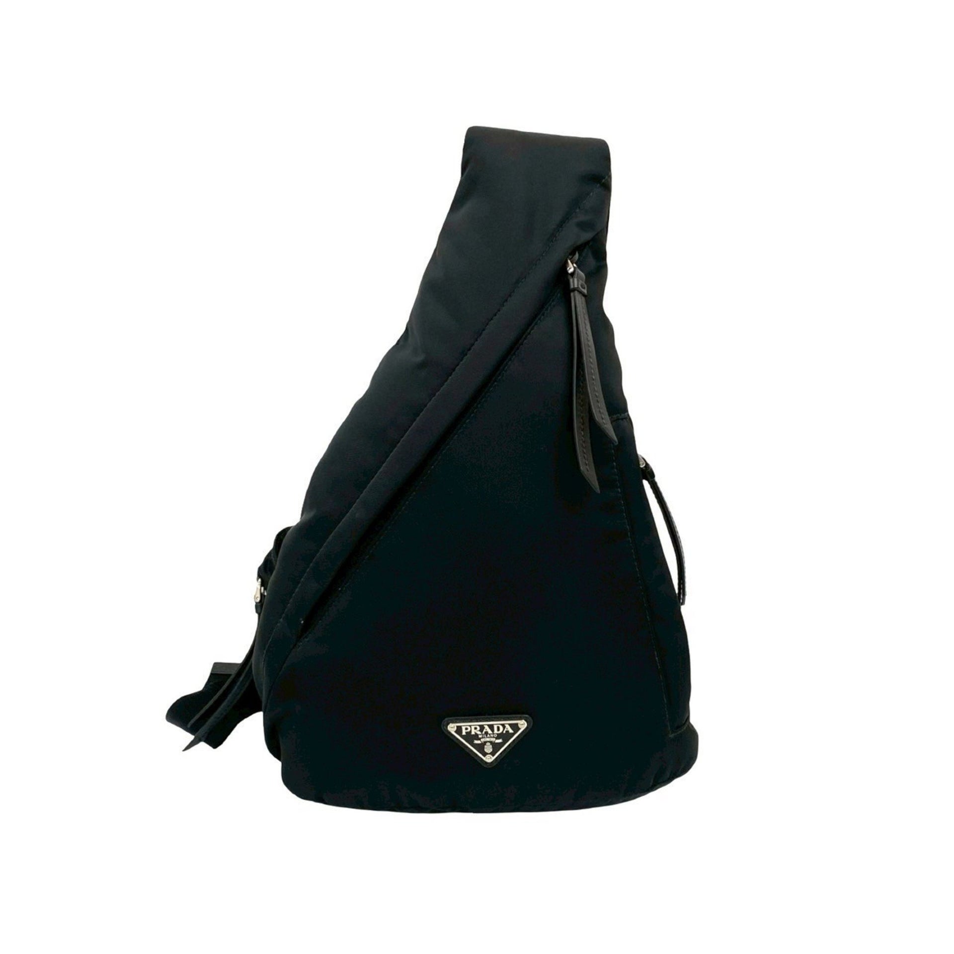 Unused, stored condition, with card. PRADA triangle logo plate, metal hardware, nylon body bag/shoulder bag, sacoche, black, o3436.