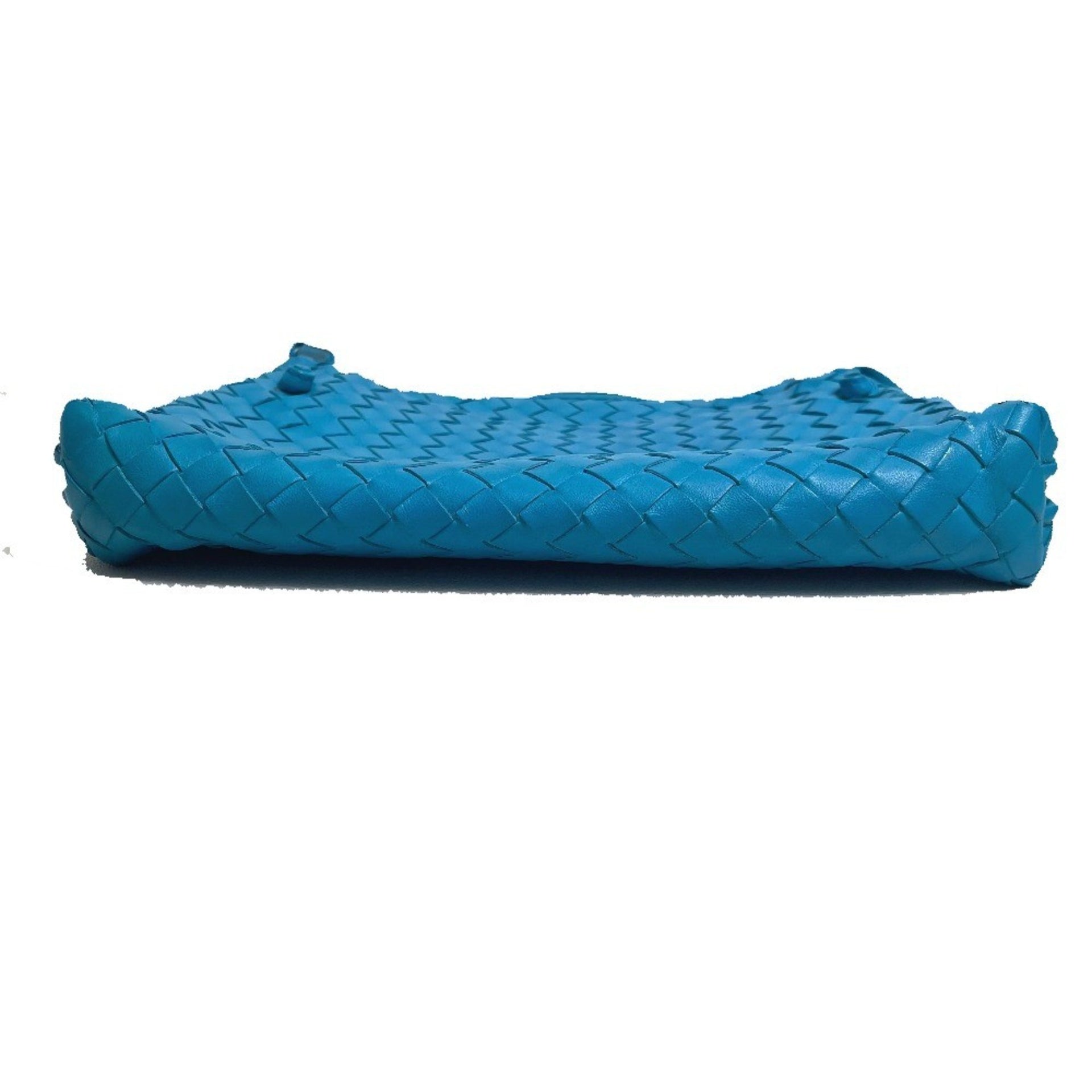 BOTTEGA VENETA 245354 Intrecciato Nodini Pochette Shoulder Bag in Lamb Leather, Blue