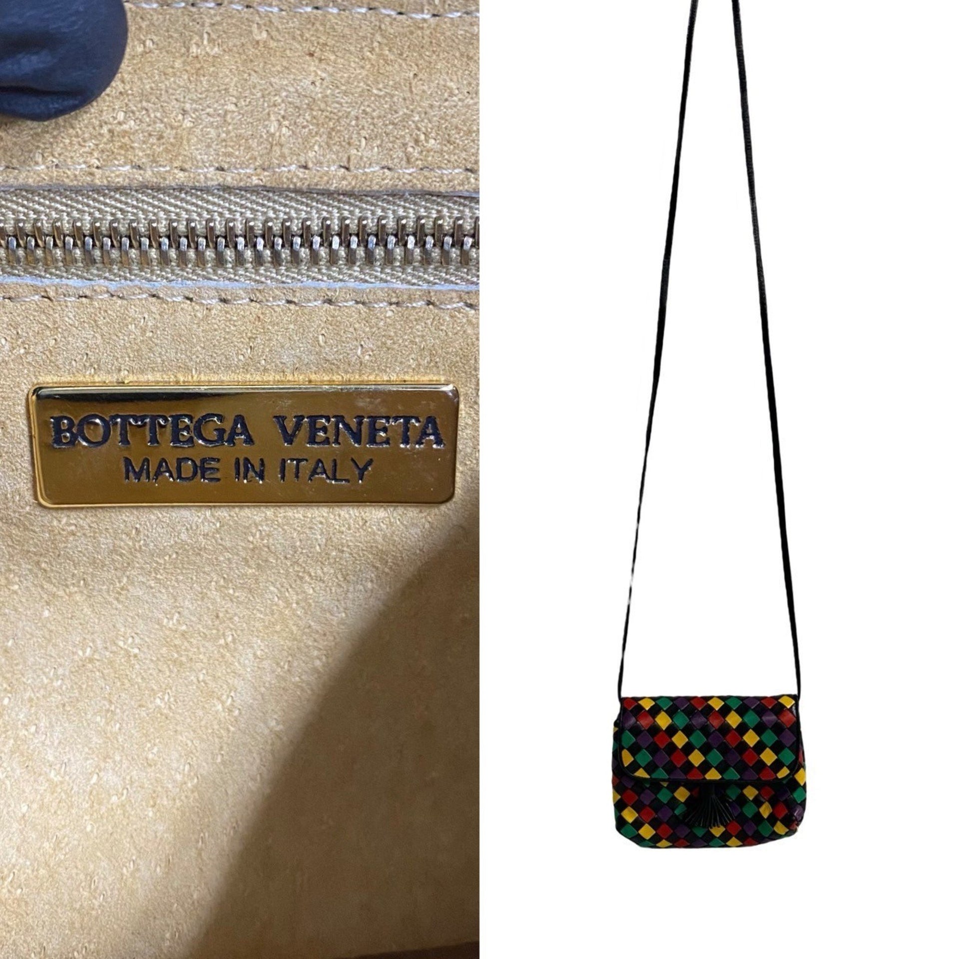 BOTTEGA VENETA Intrecciato Leather Mini Shoulder Bag/Pochette in Black and Multicolor (98851)