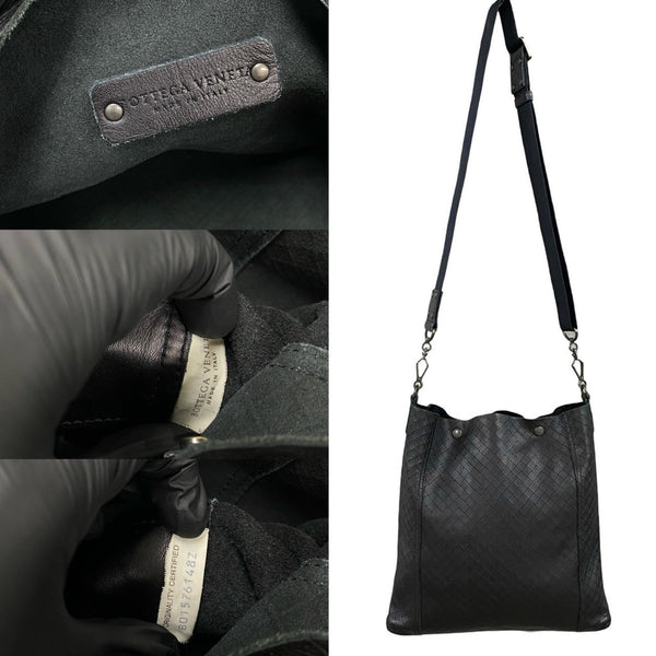 BOTTEGA VENETA Intrecciato Leather Shoulder Bag/Pochette/Sacoche in Black 98395