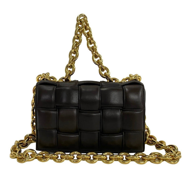 BOTTEGA VENETA The Chain Padded Cassette Leather Shoulder Bag/Pochette in Dark Brown (46767)