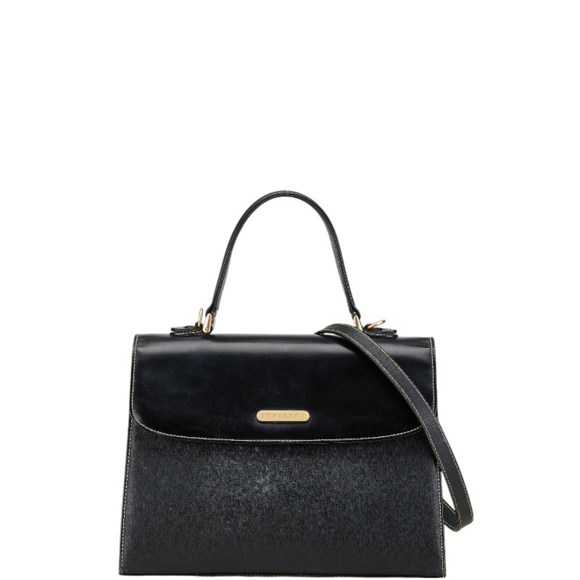 Burberry Nova Check Handbag Shoulder Bag 2WAY Black Leather Women\'s BURBERRY