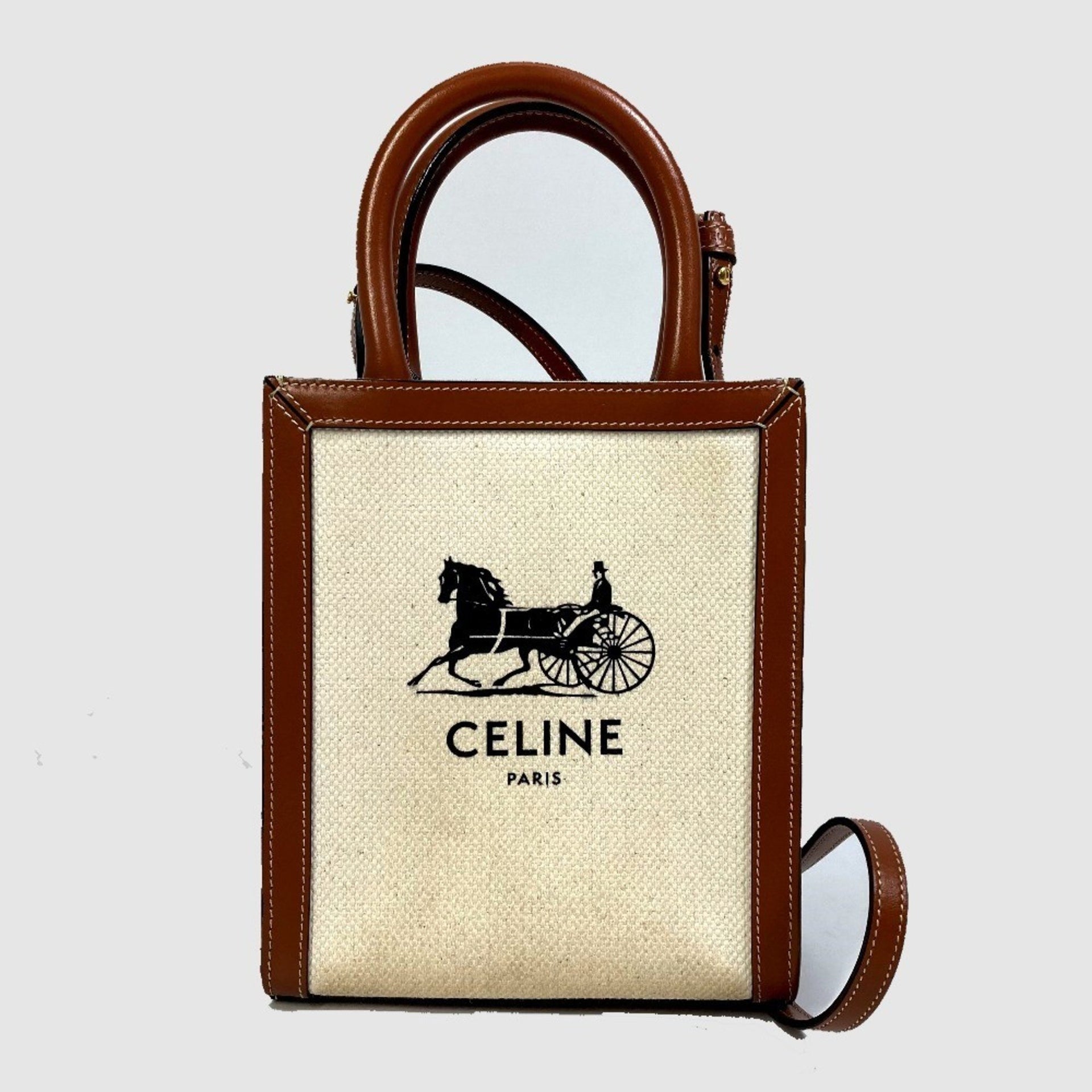 CELINE 193302DCI.02NT Horse-Drawn Vertical Cabas Mini 2-Way Shoulder Bag in Canvas/Leather, Natural Beige