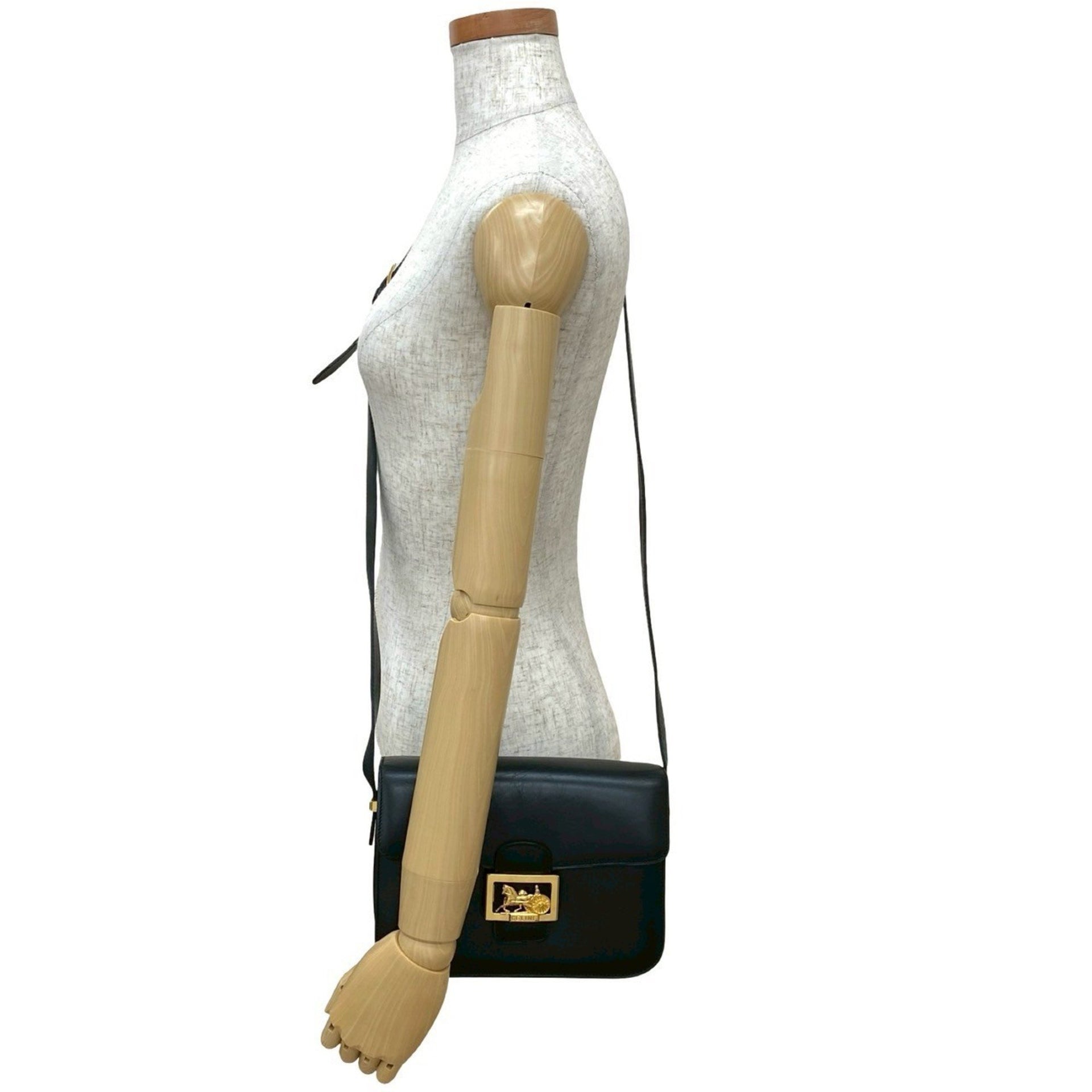 CELINE 947-1: Horse-Drawn Carriage Design, Calfskin Leather, Genuine Leather Shoulder Bag, Pochette, Sacoche, Black