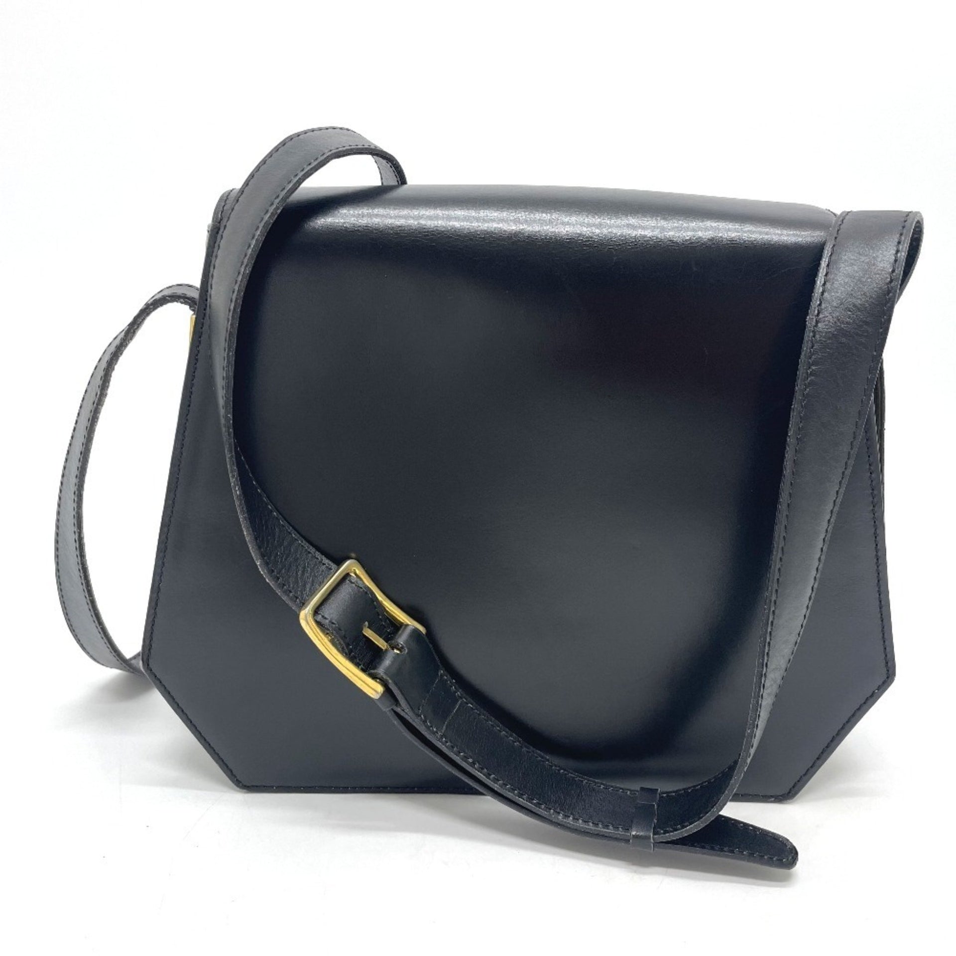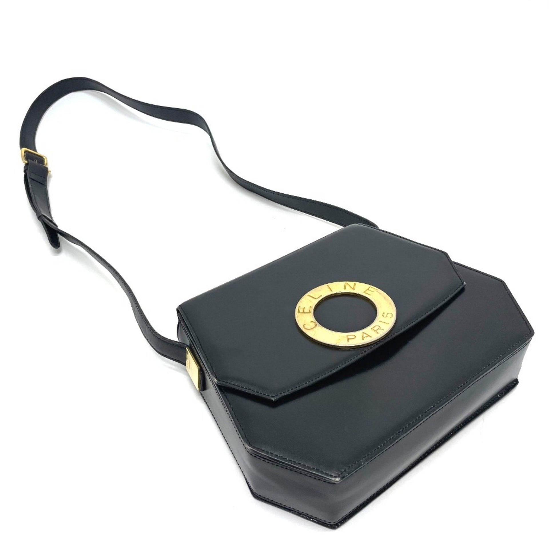 CELINE Logo Accordion Shoulder Bag in Leather, Black