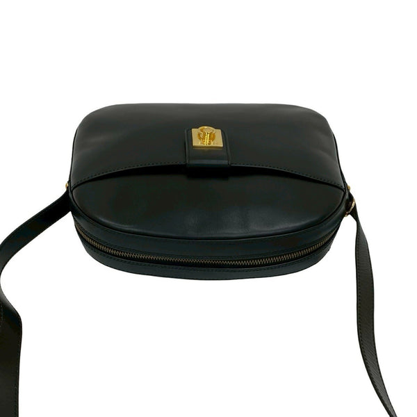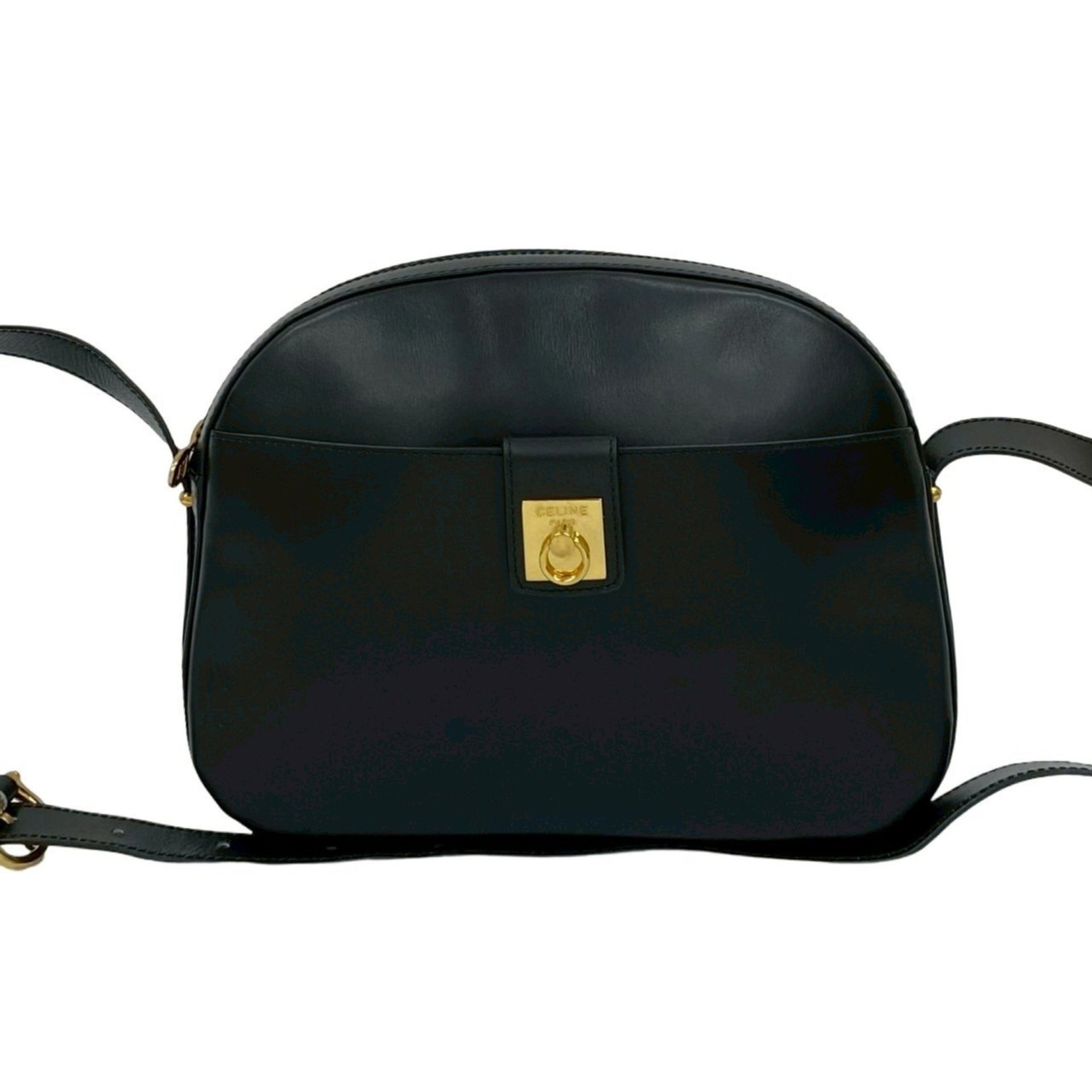 CELINE Logo Ring Hardware Leather Genuine Shoulder Bag Pochette Sacoche Black 41410