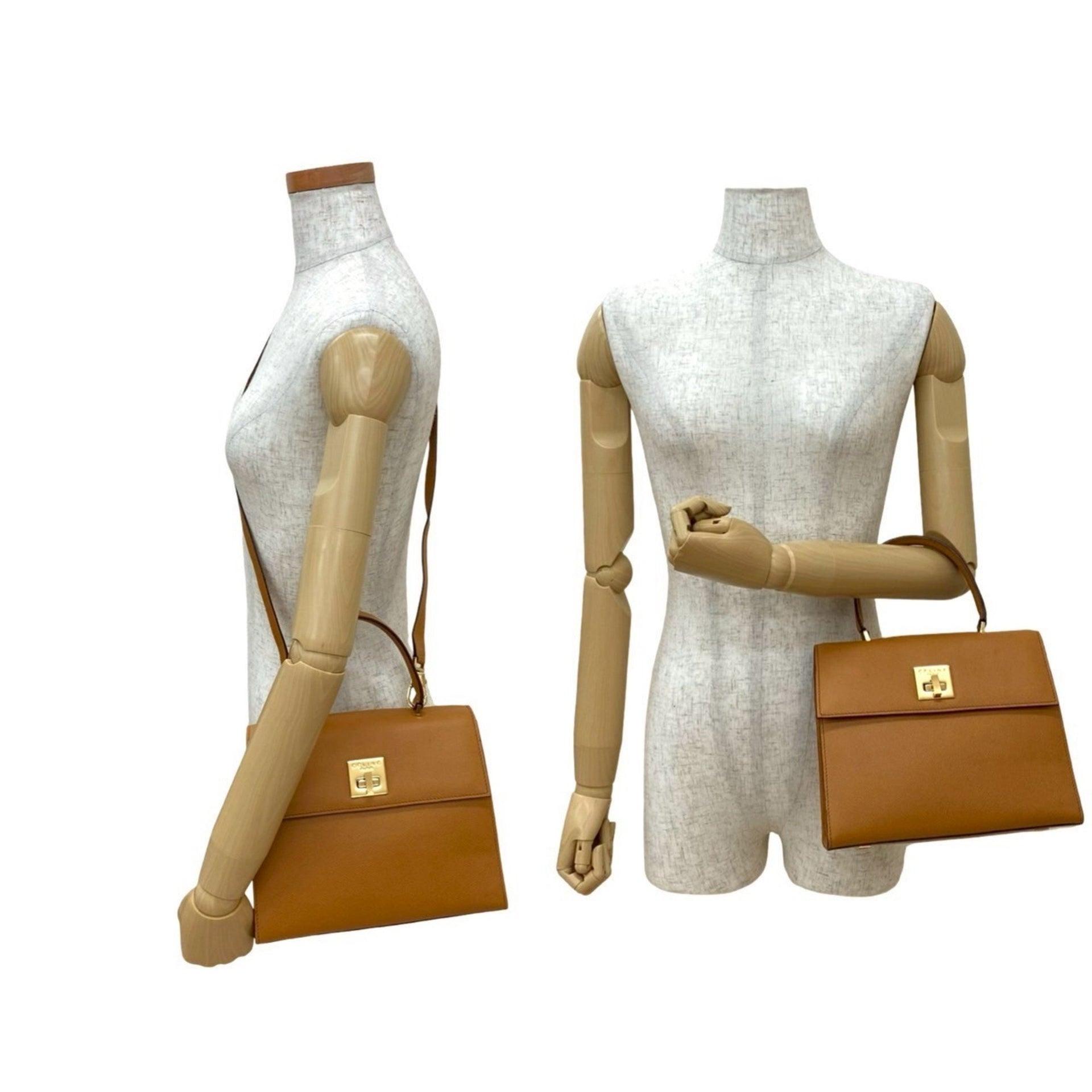 CELINE Logo Turnlock Hardware Leather Genuine 2-Way Handbag/Shoulder Bag Camel 05993