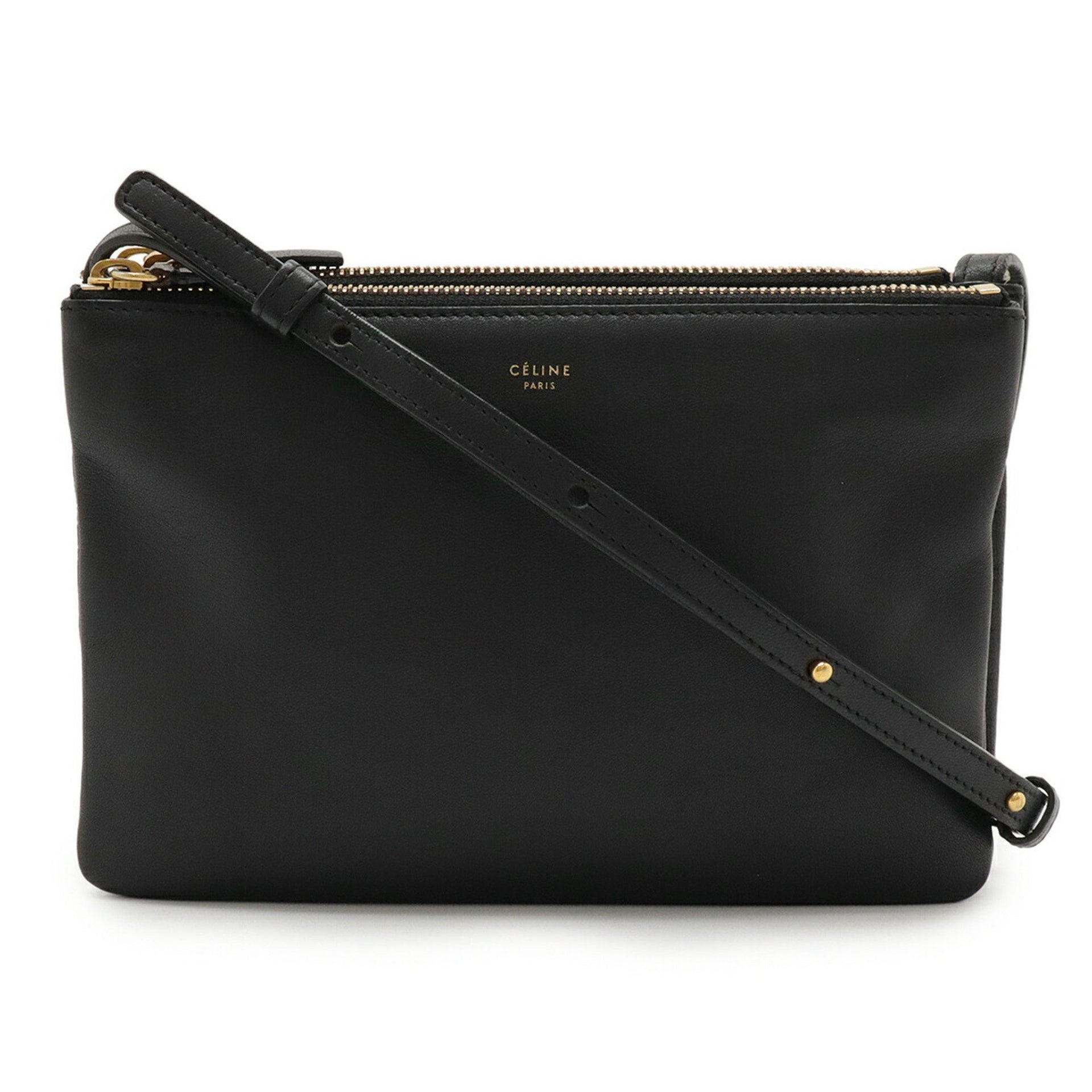 CELINE Trio Small Shoulder Bag/Pouch in Black Leather (192033)