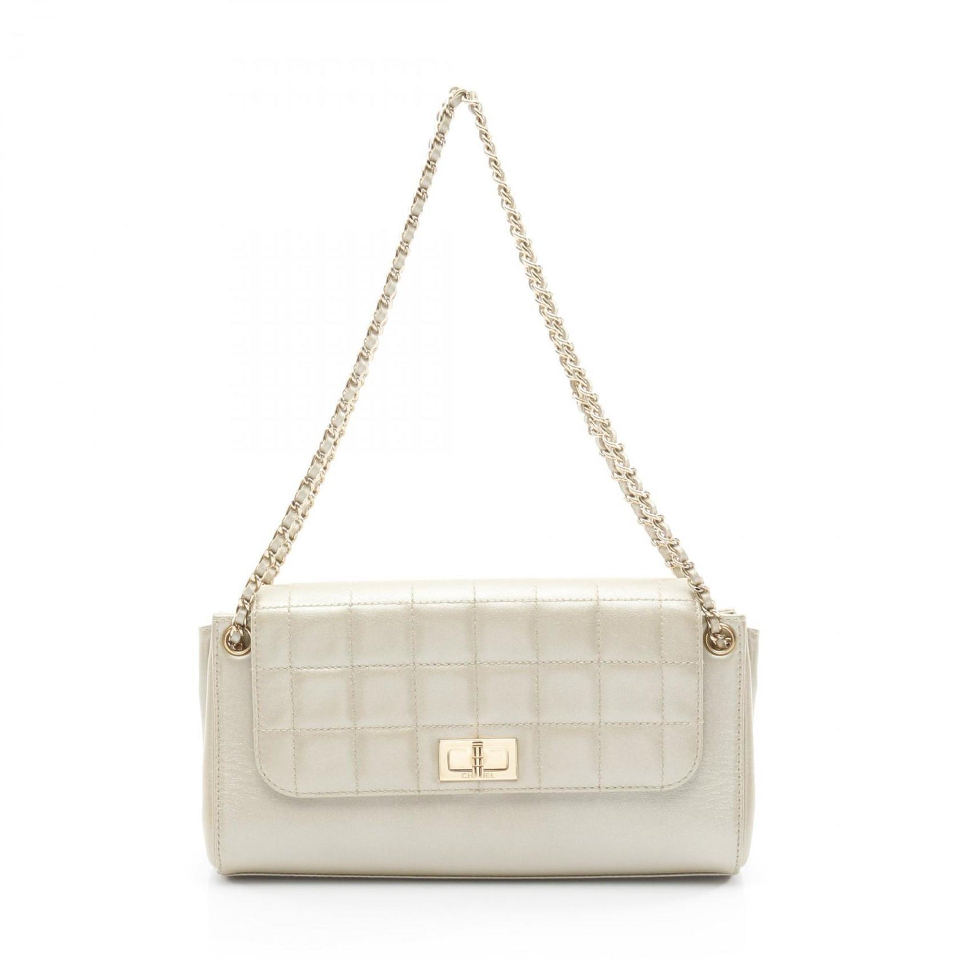 Chanel 2.55 Chocobar Shoulder Bag in Lambskin Leather, Gold