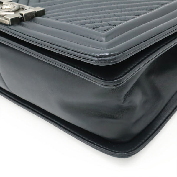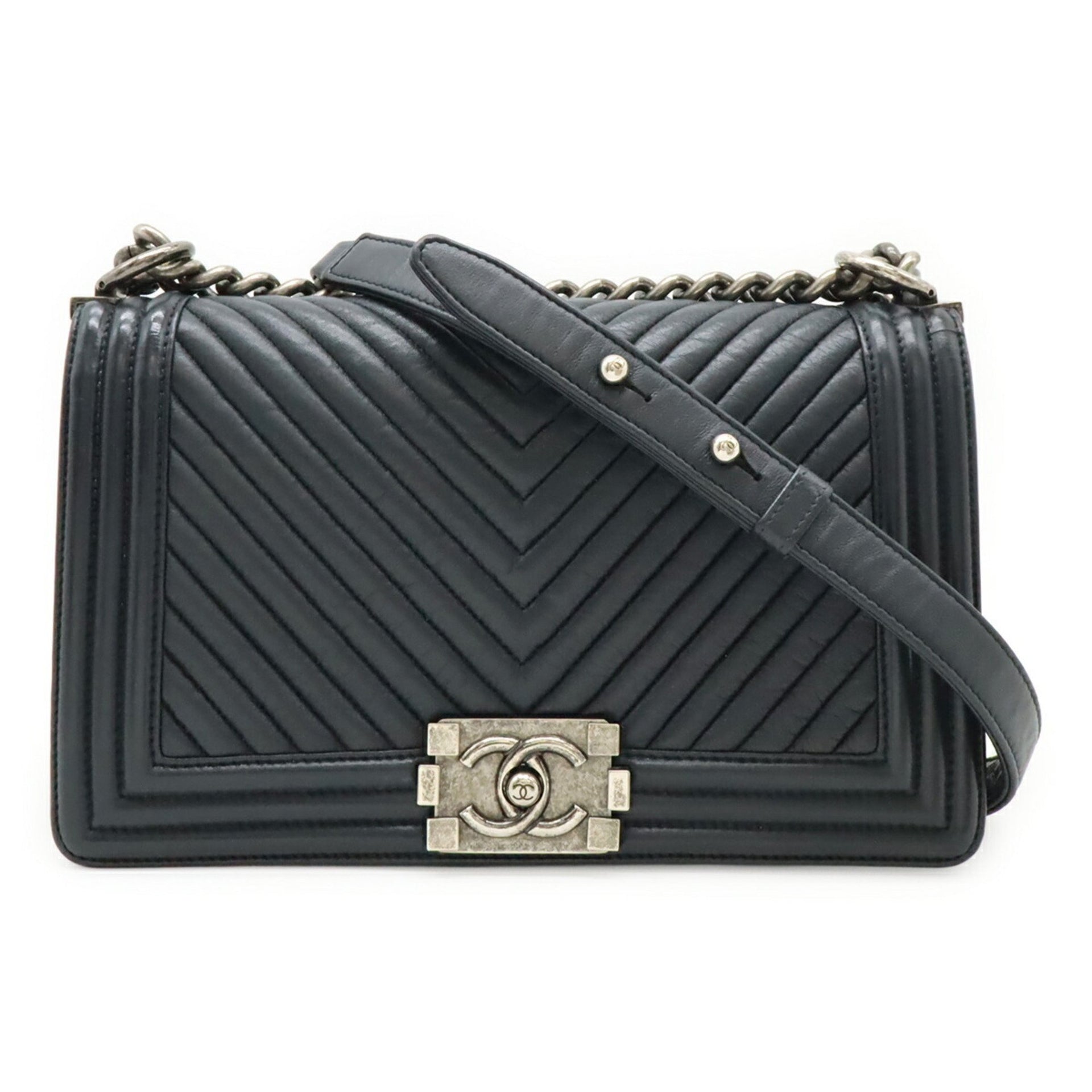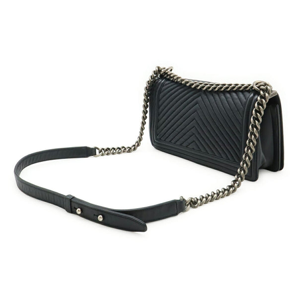 CHANEL Boy Chanel 25 V-Stitch Coco Mark Chain Shoulder Bag in Calfskin Leather, Black/Grey, A67066
