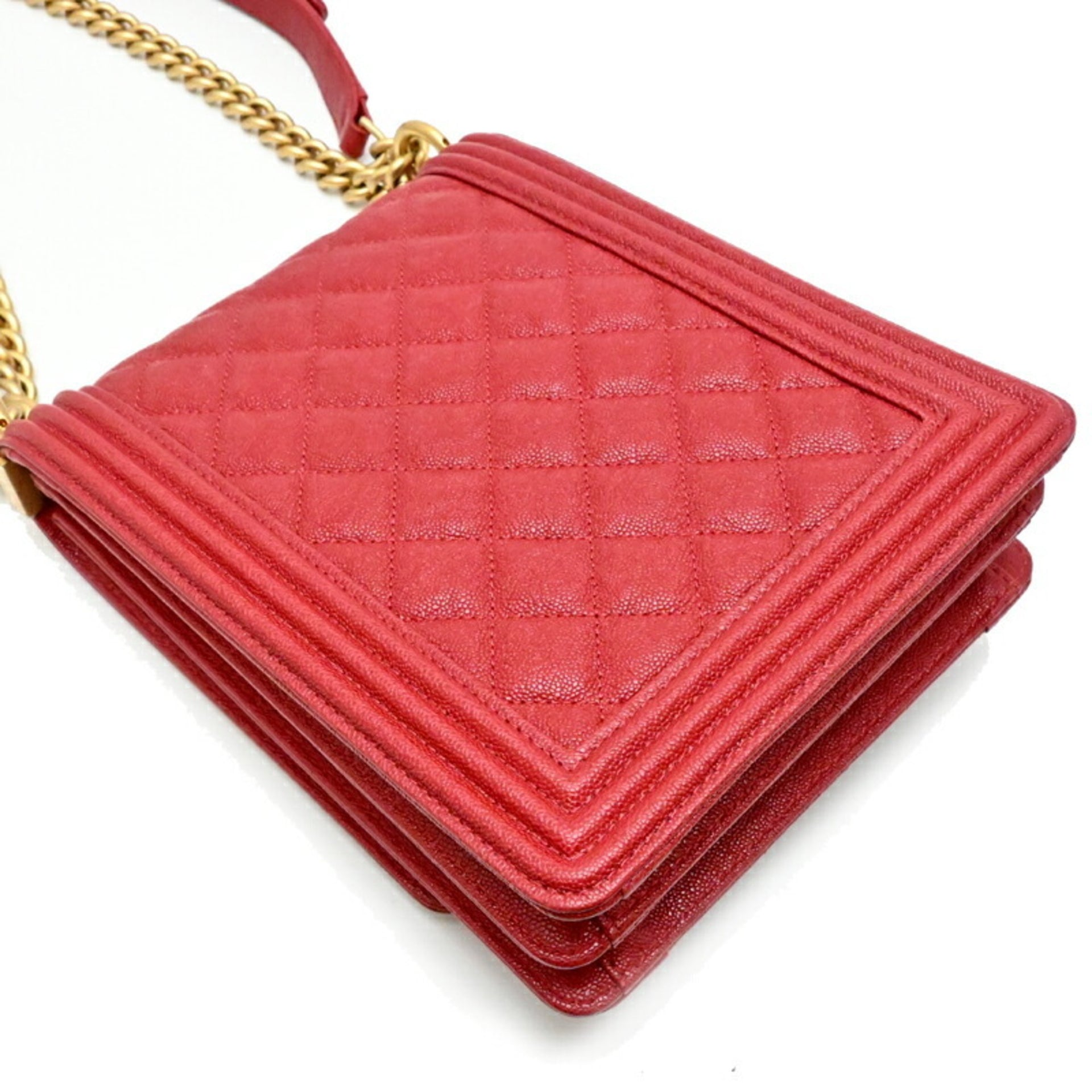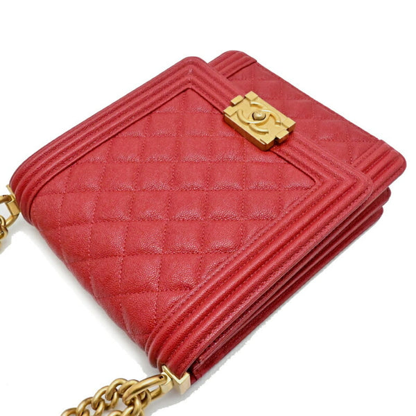 CHANEL Boy Chanel Women\'s Shoulder Bag AS0130 Caviar Leather Red