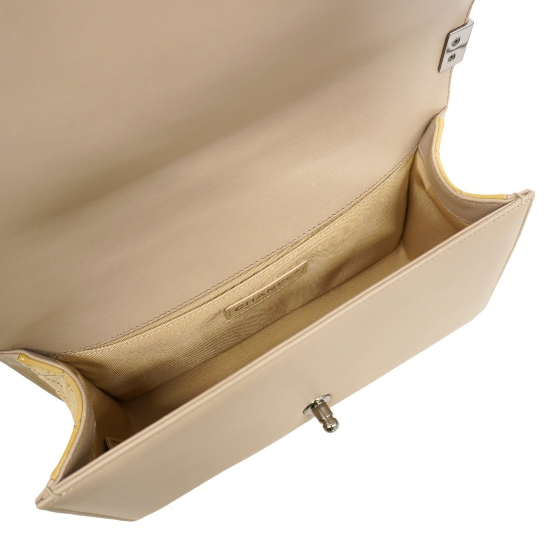 Chanel Boy Shoulder Bag, V-Stitch Chain Patent Leather, Yellow, Women\'s