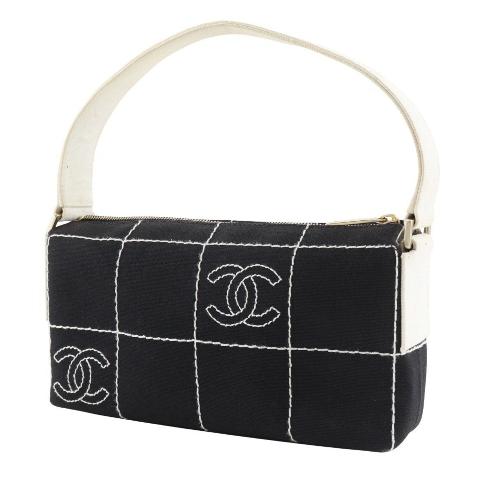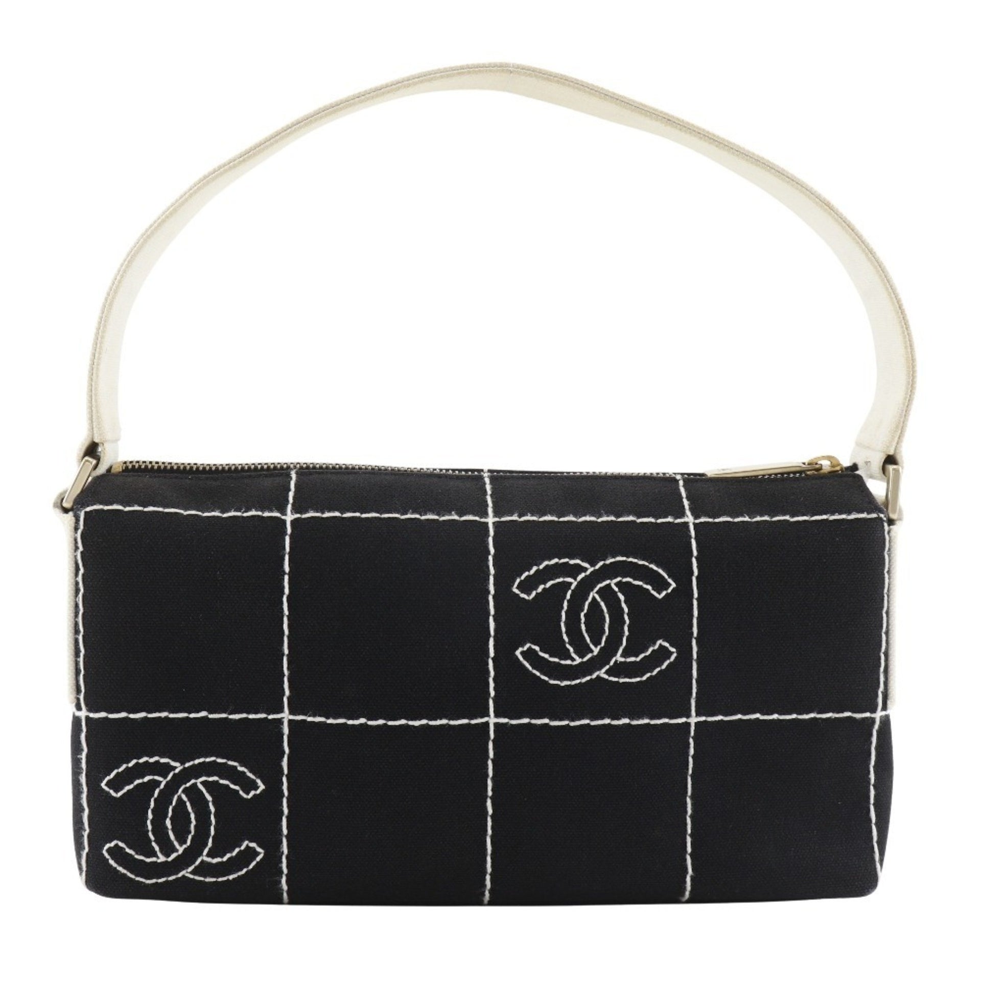 CHANEL Chocolate Bar Shoulder Bag Canvas Black Women\'s