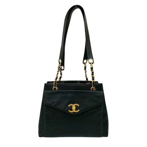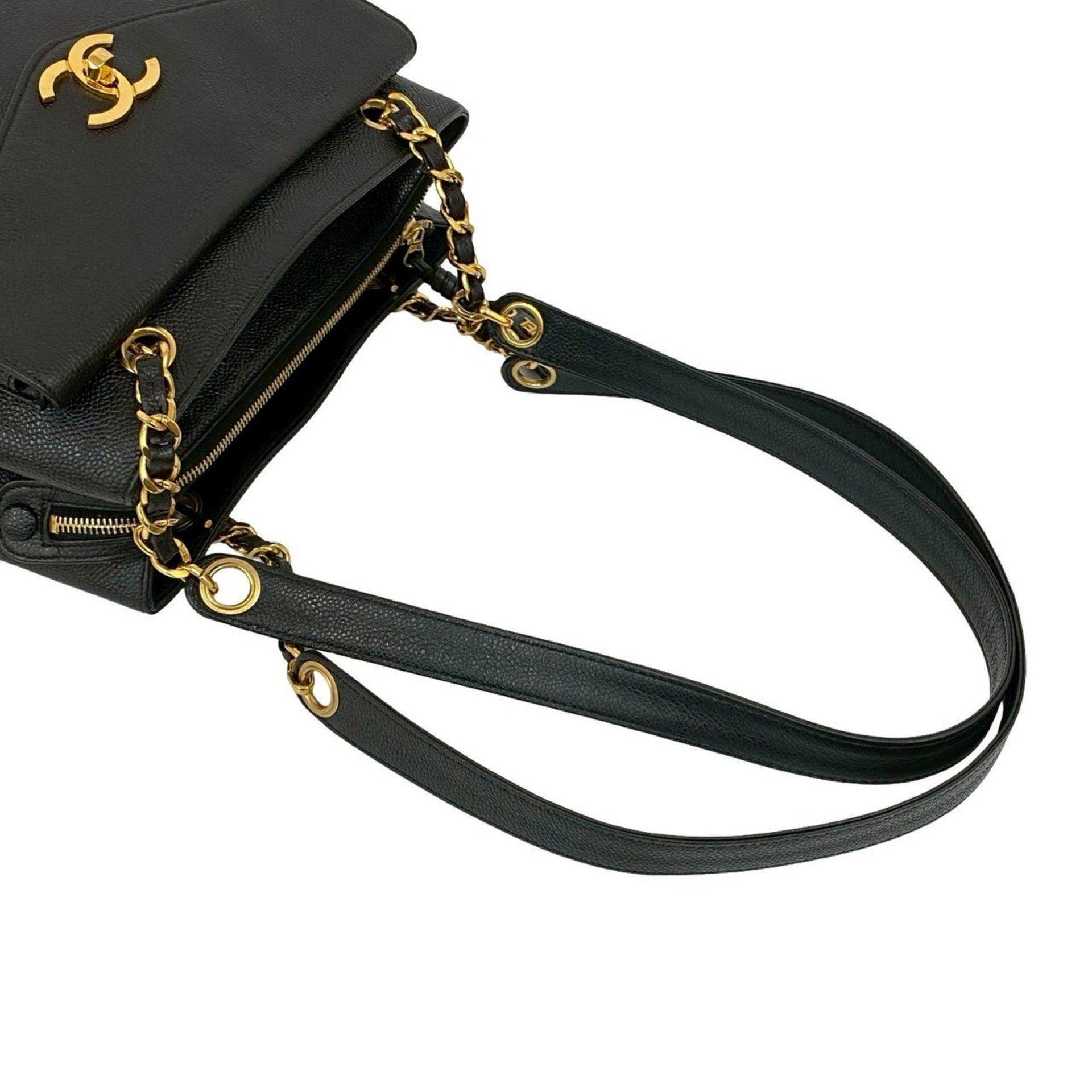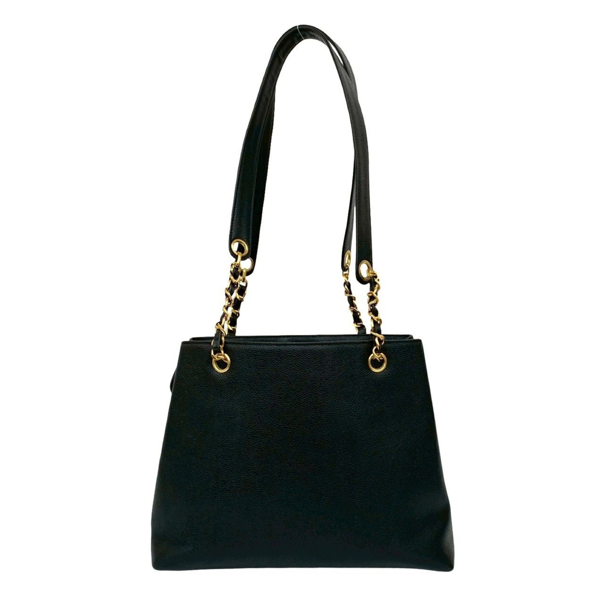 CHANEL Coco Mark Caviar Leather Chain Tote Bag/Semi Shoulder Bag 55549