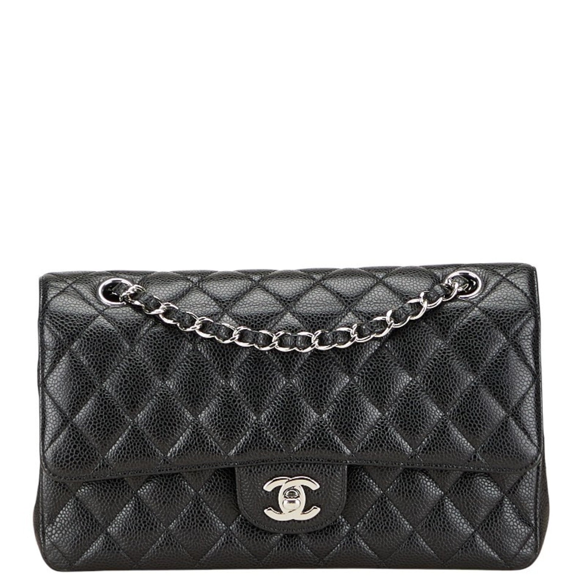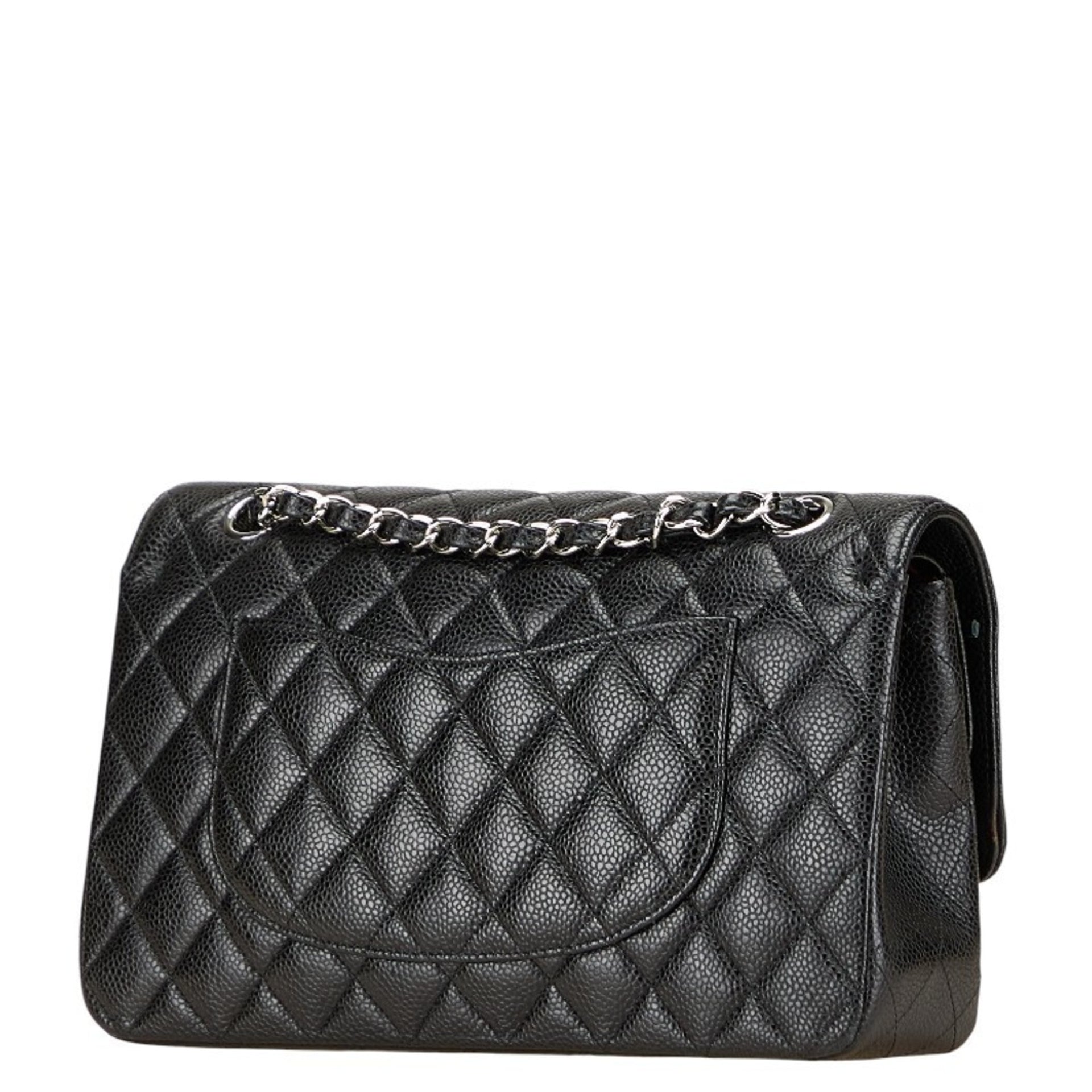 CHANEL Coco Mark Matelasse 25 Double Flap Chain Shoulder Bag in Black Caviar Leather for Women