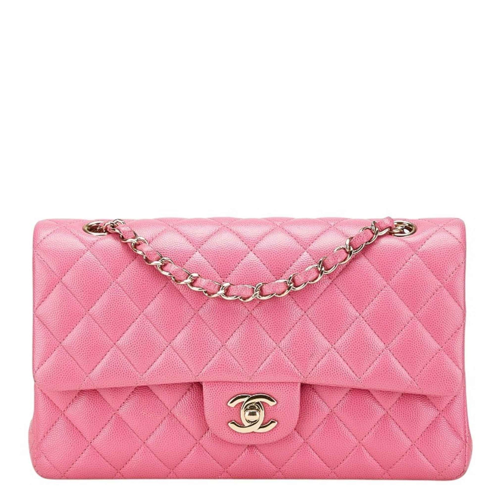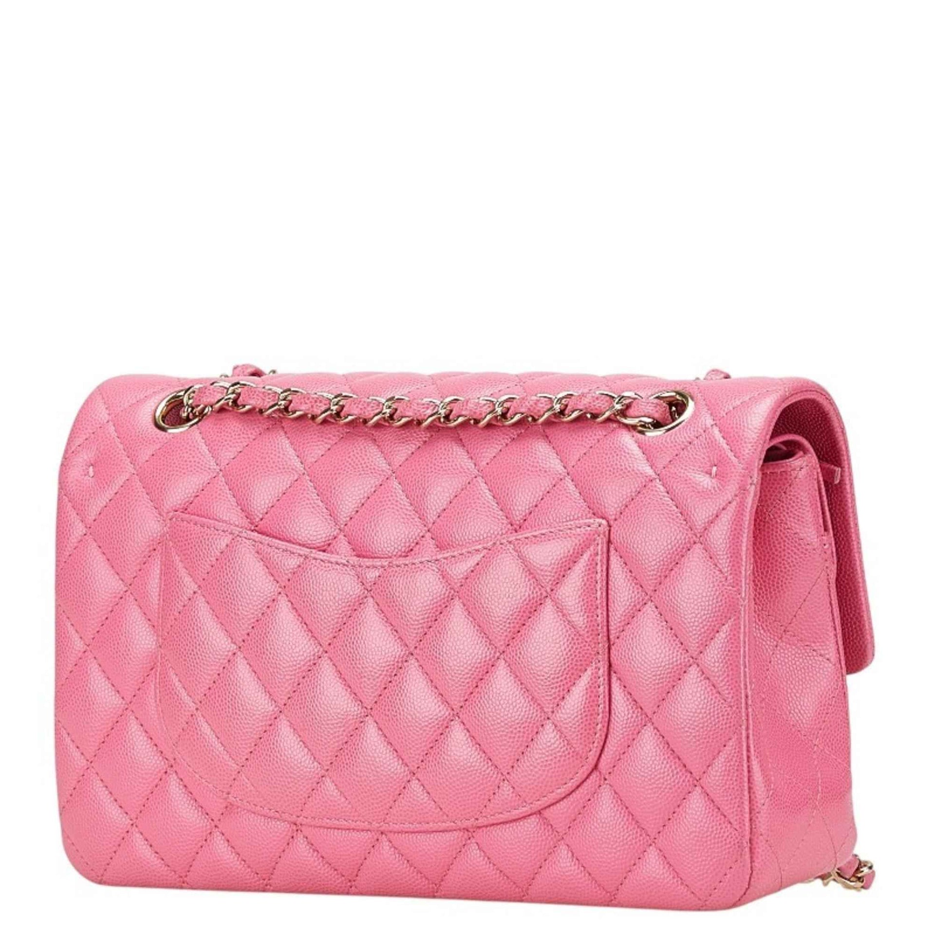 CHANEL Coco Mark Matelasse 25 Double Flap Chain Shoulder Bag in Pink Caviar Leather with Gold Hardware, Women\'s
