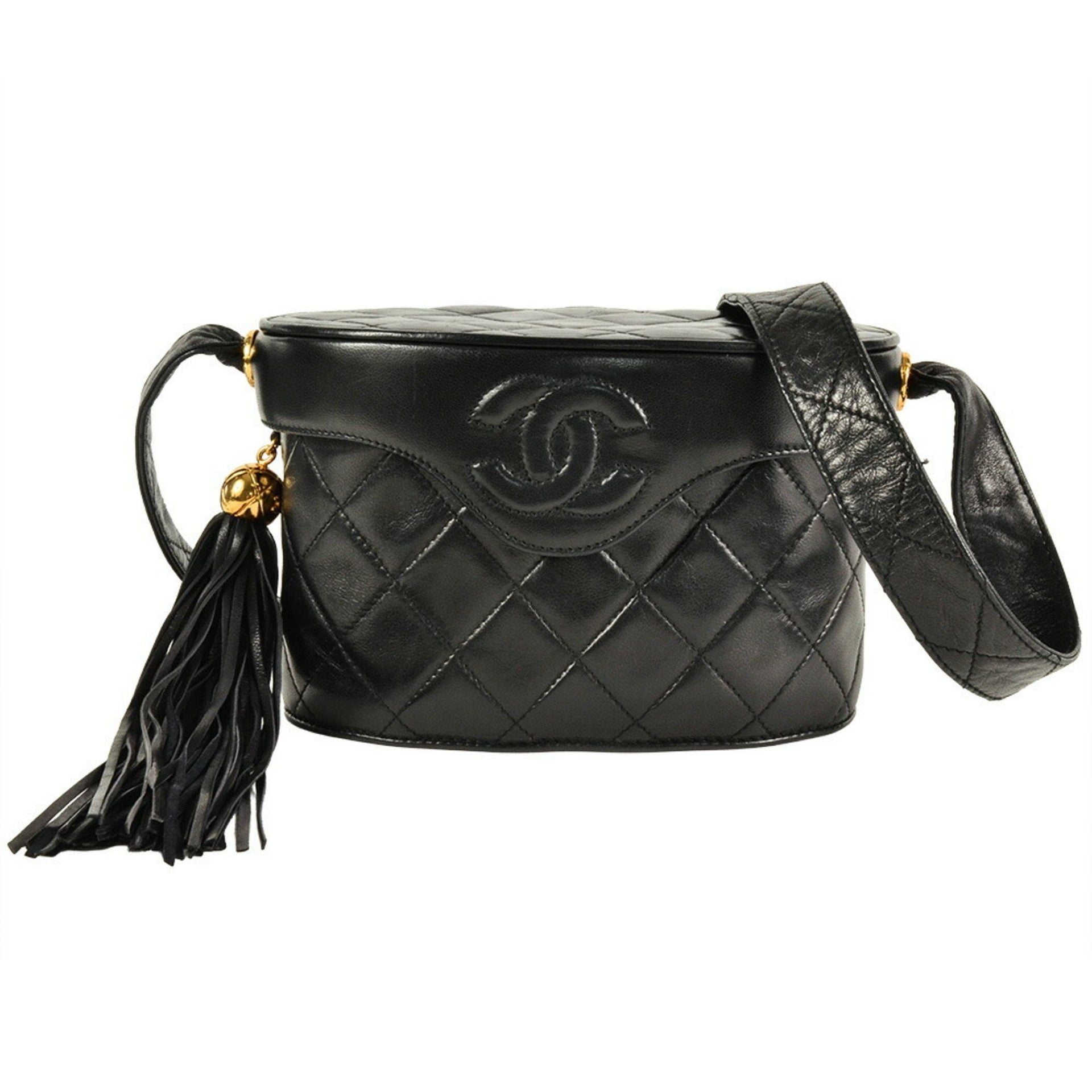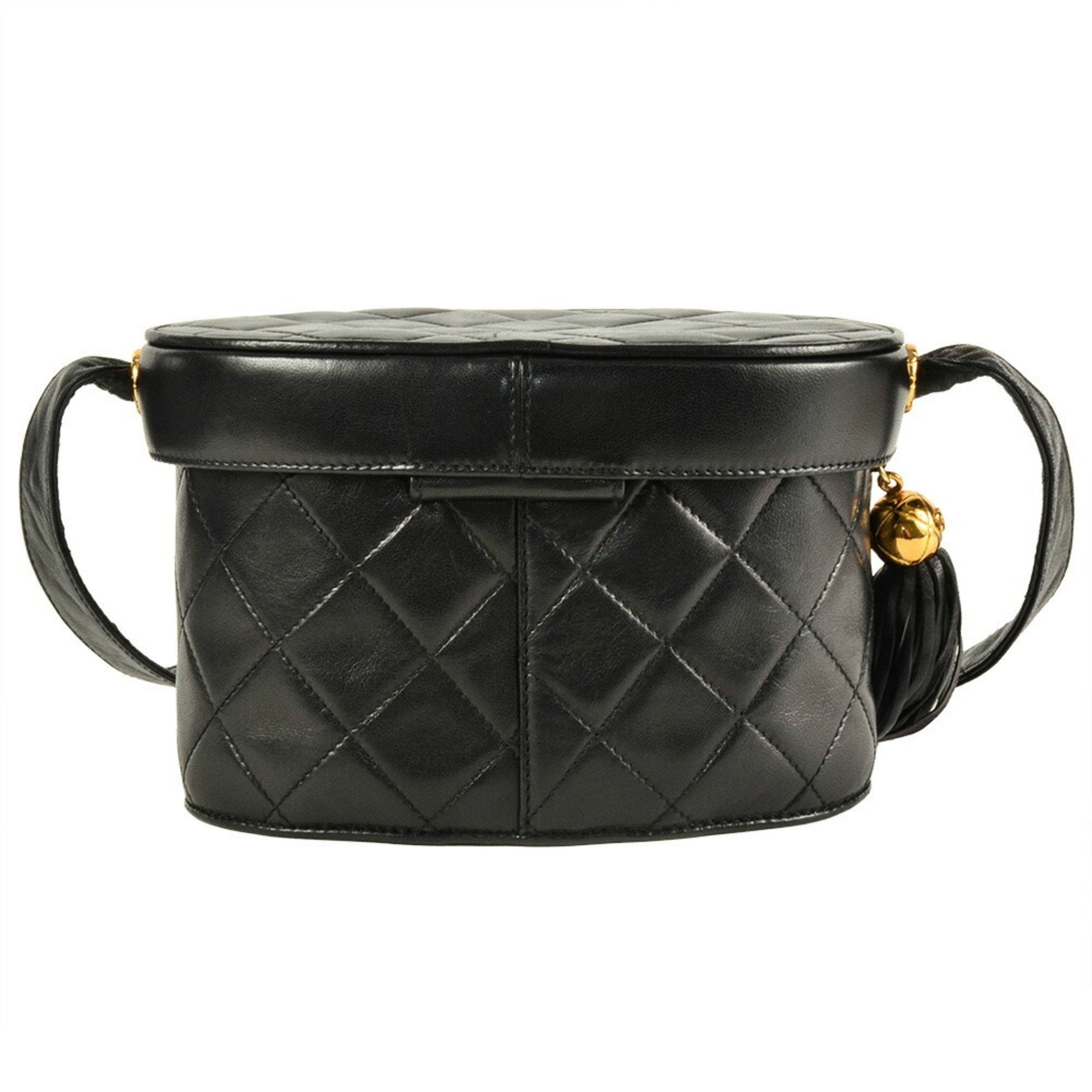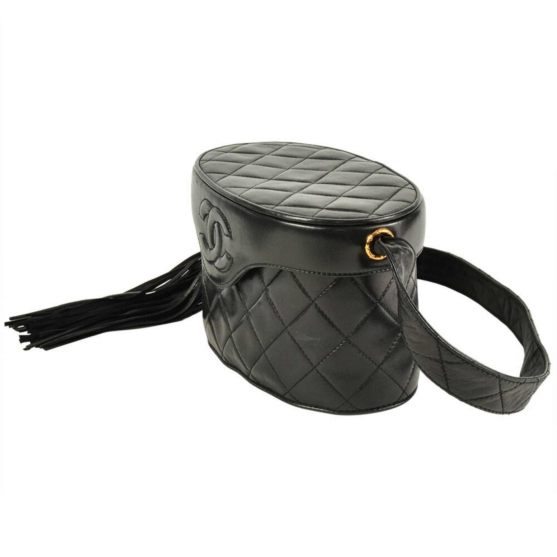 CHANEL Coco Mark Matelasse Tassel Shoulder Bag Lambskin Black