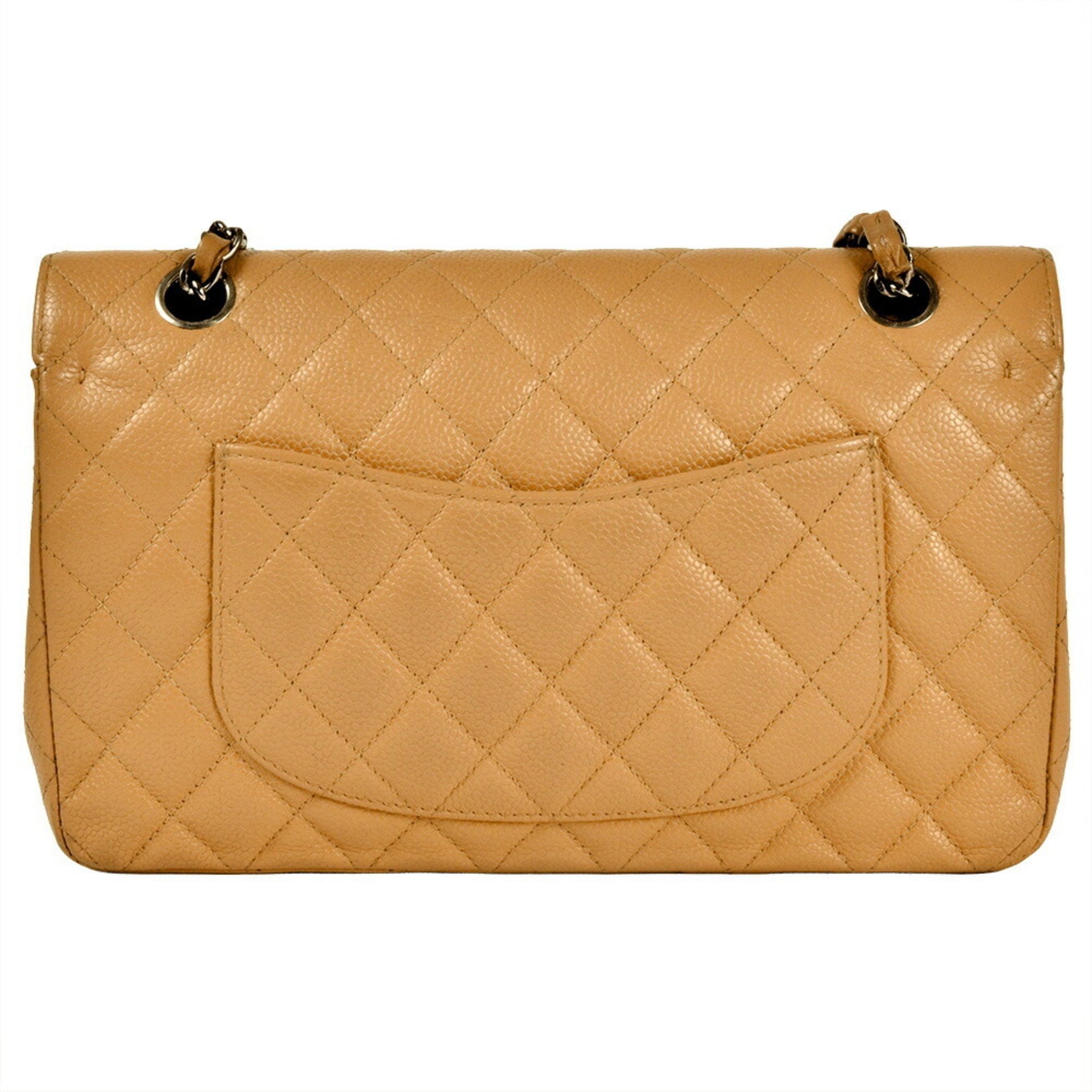 CHANEL Matelasse 25 Double Flap Chain Shoulder Bag Caviar Skin A01112 Beige Coco Mark No. 8 Women\'s