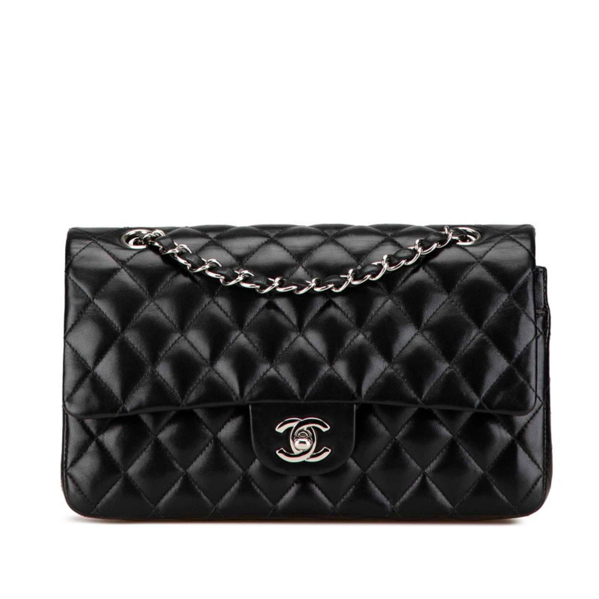 CHANEL Matelasse 25 Double Flap Coco Mark Chain Shoulder Bag in Black Lambskin for Women