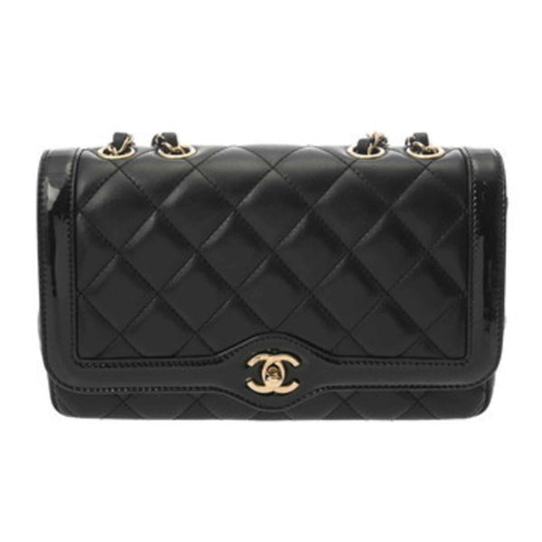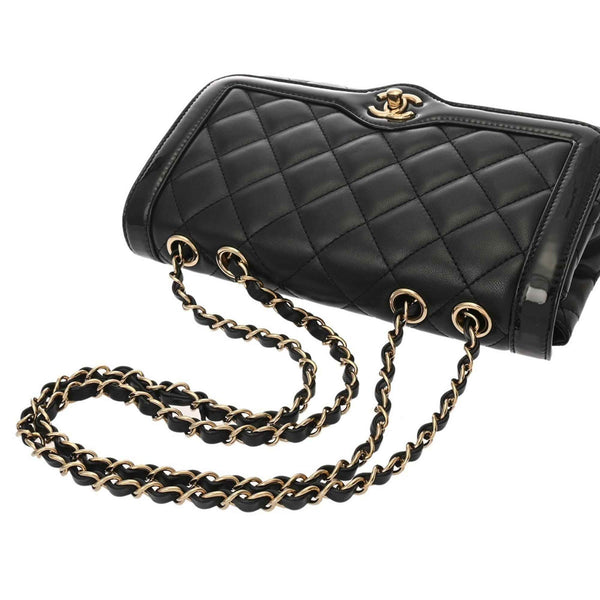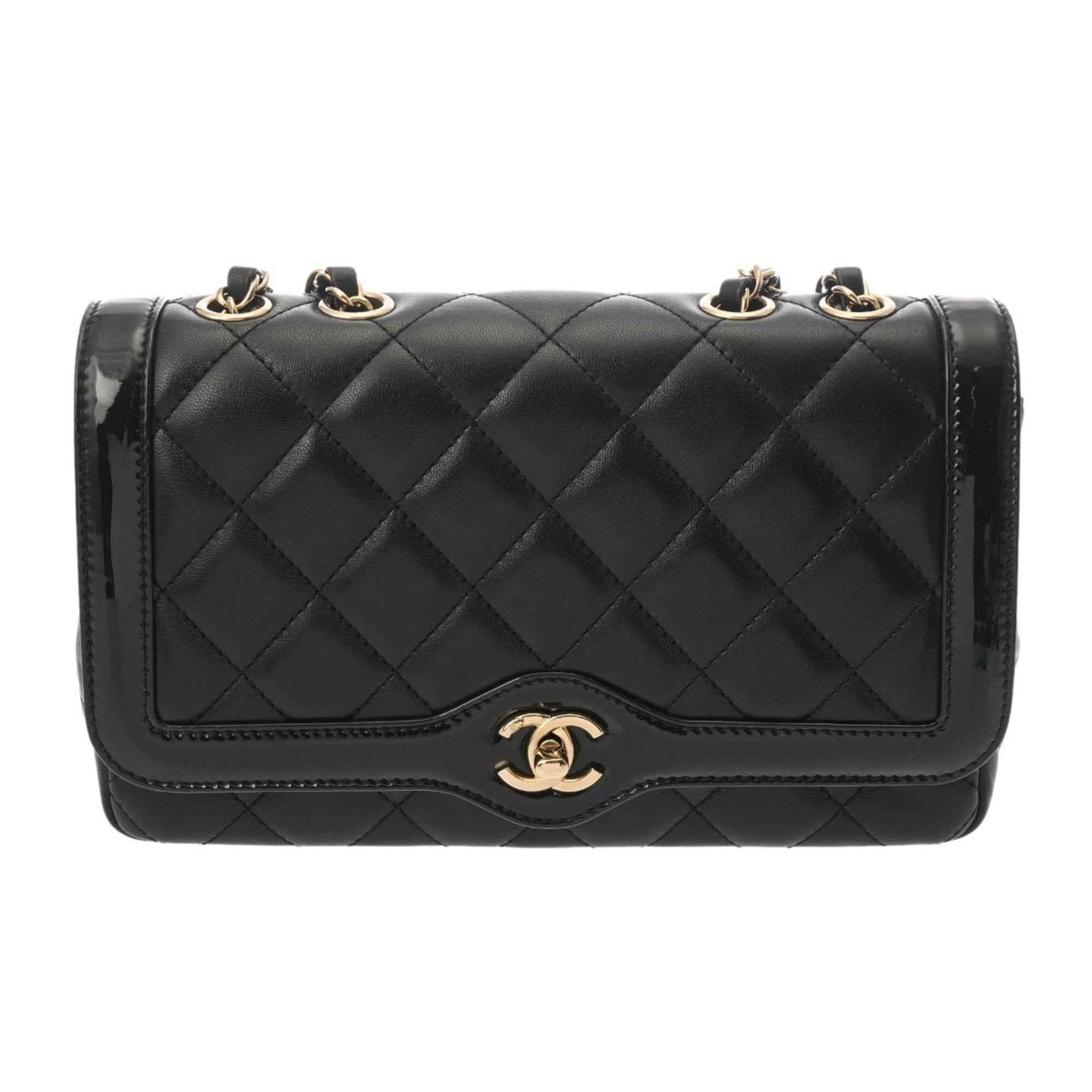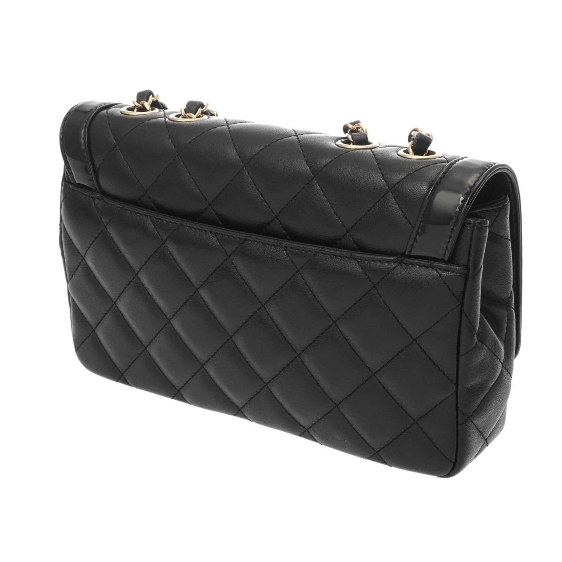 CHANEL Matelasse Chain Shoulder Bag, 25cm, Black, AS5049, Women\'s Lambskin Enamel Bag