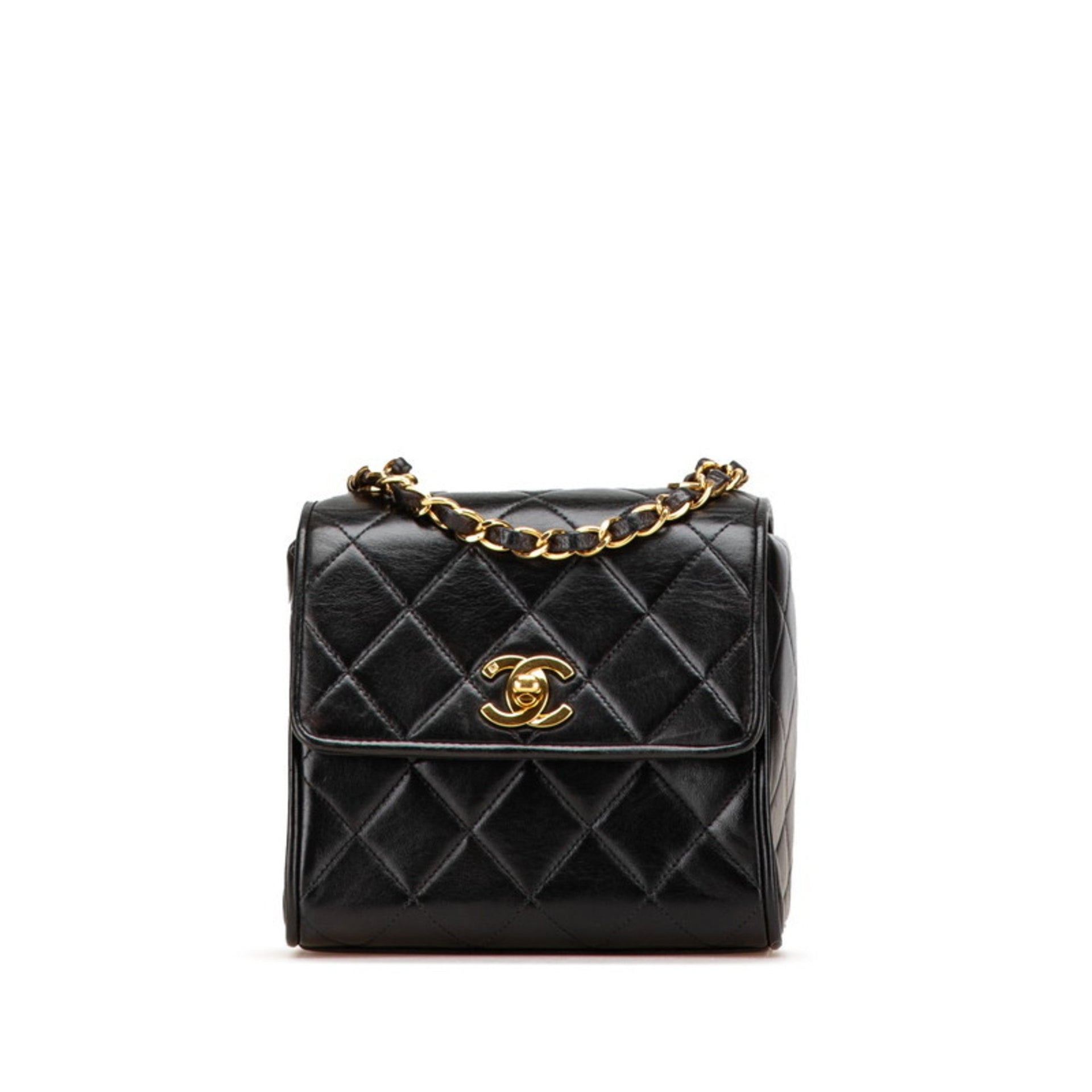 CHANEL Matelasse Coco Mark Chain Shoulder Bag in Black Lambskin for Women