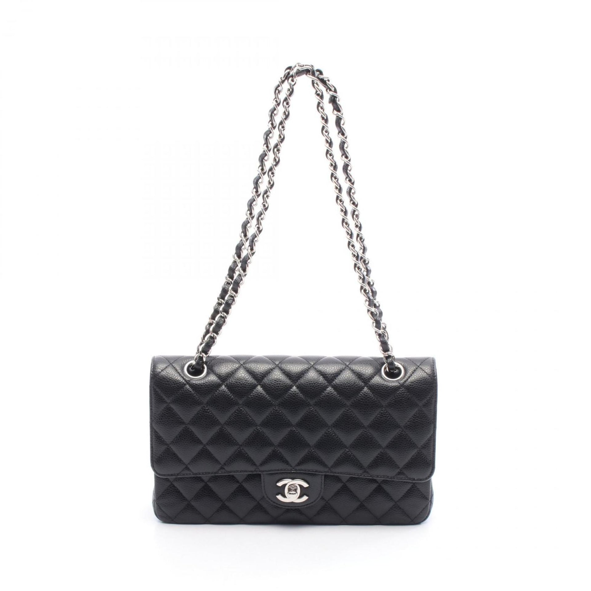 CHANEL Matelasse Double Flap Shoulder Bag in Calfskin Leather (Black)