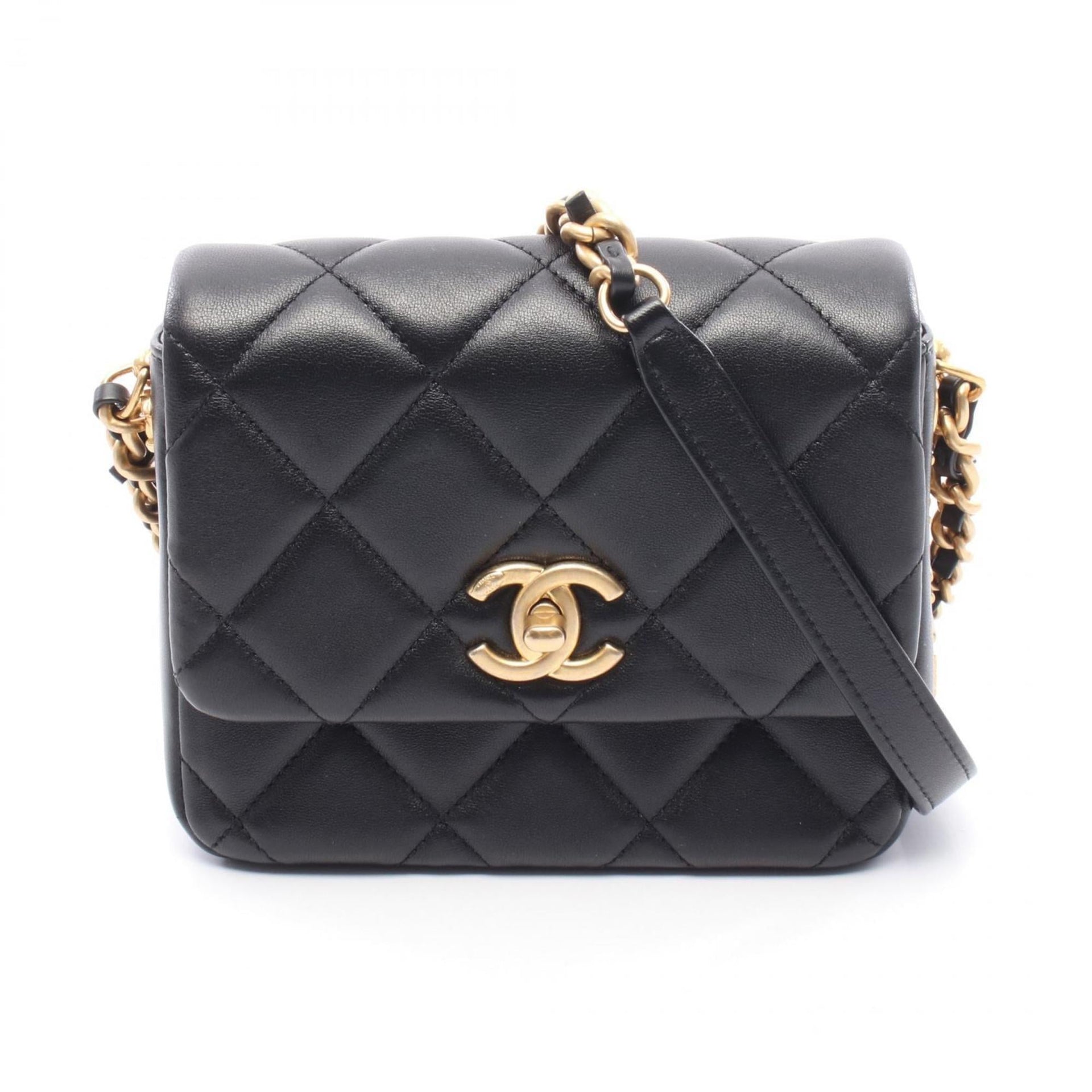 CHANEL Matelasse Shoulder Bag, Lambskin Leather, Women\'s, Black, AS2733