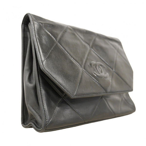 Chanel Matelasse Shoulder Bag with Chain Bag, Lambskin, Black, Women\'s