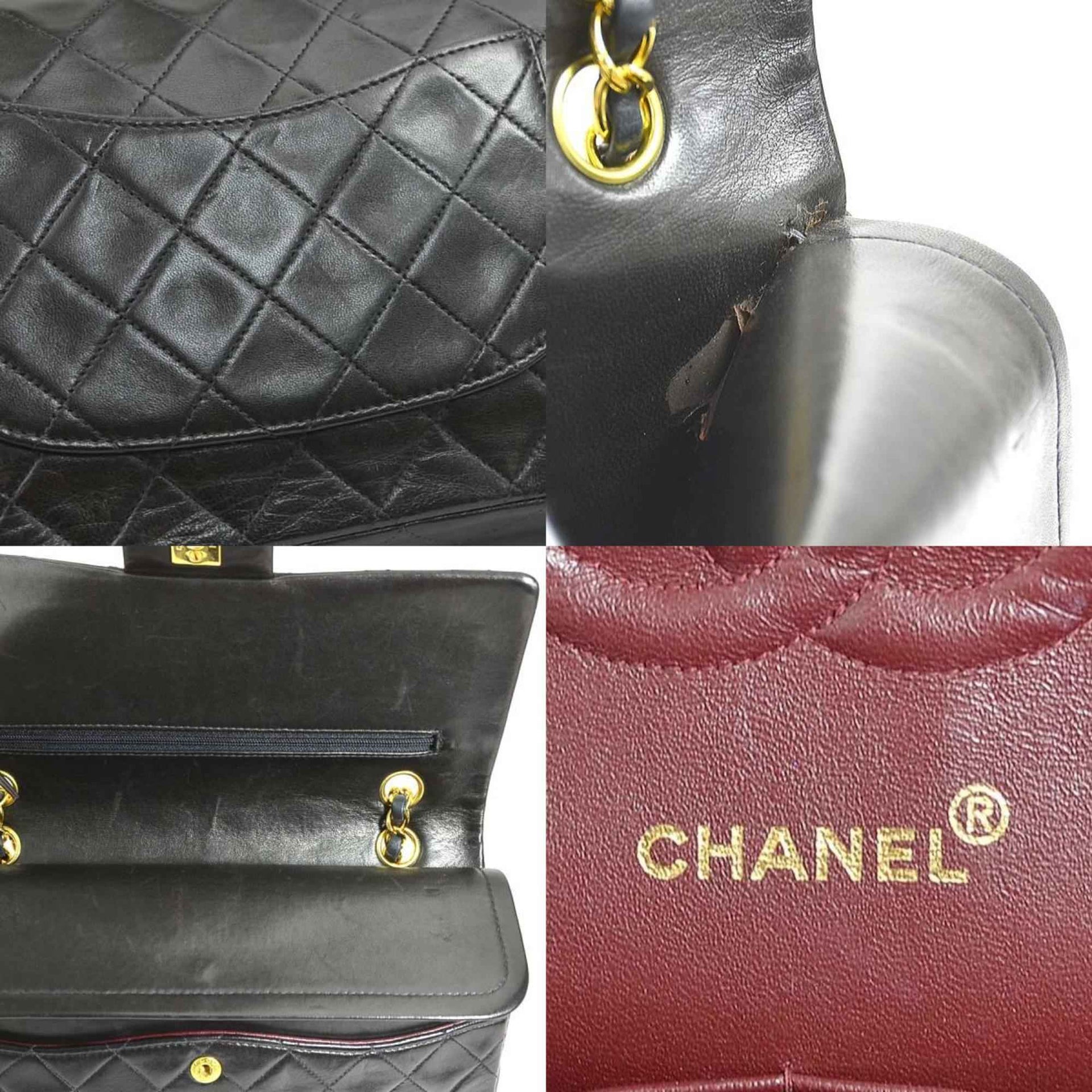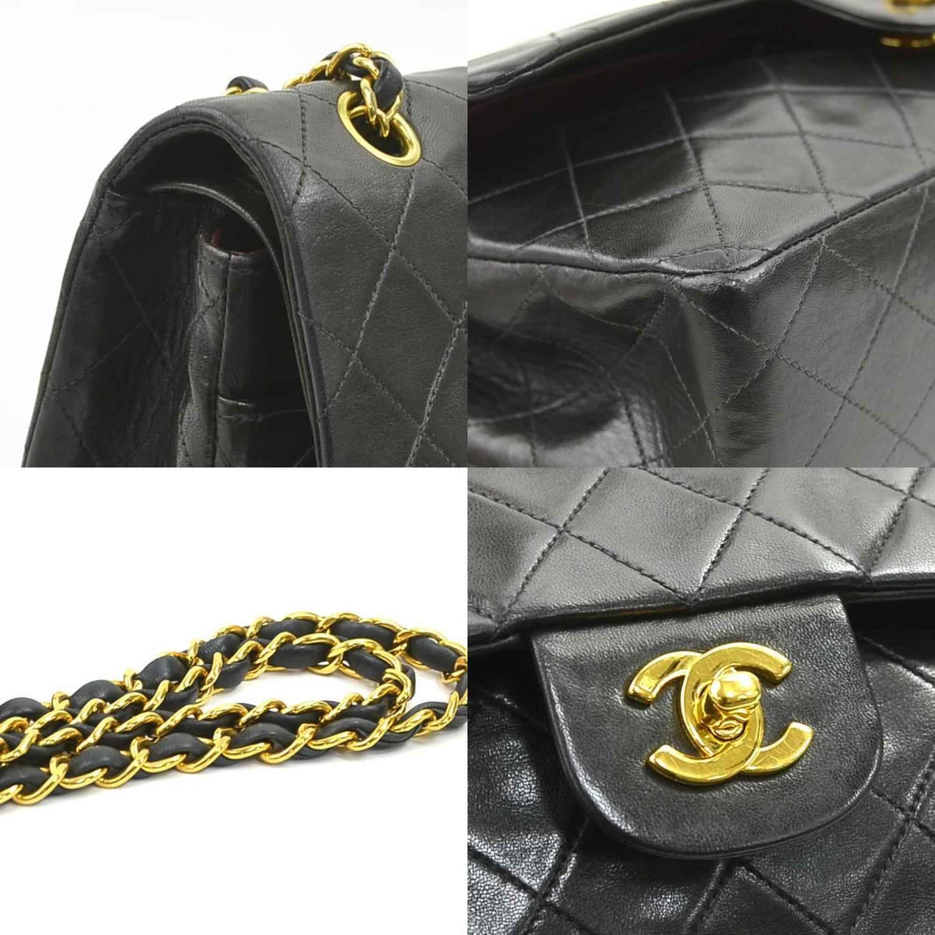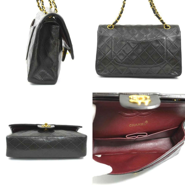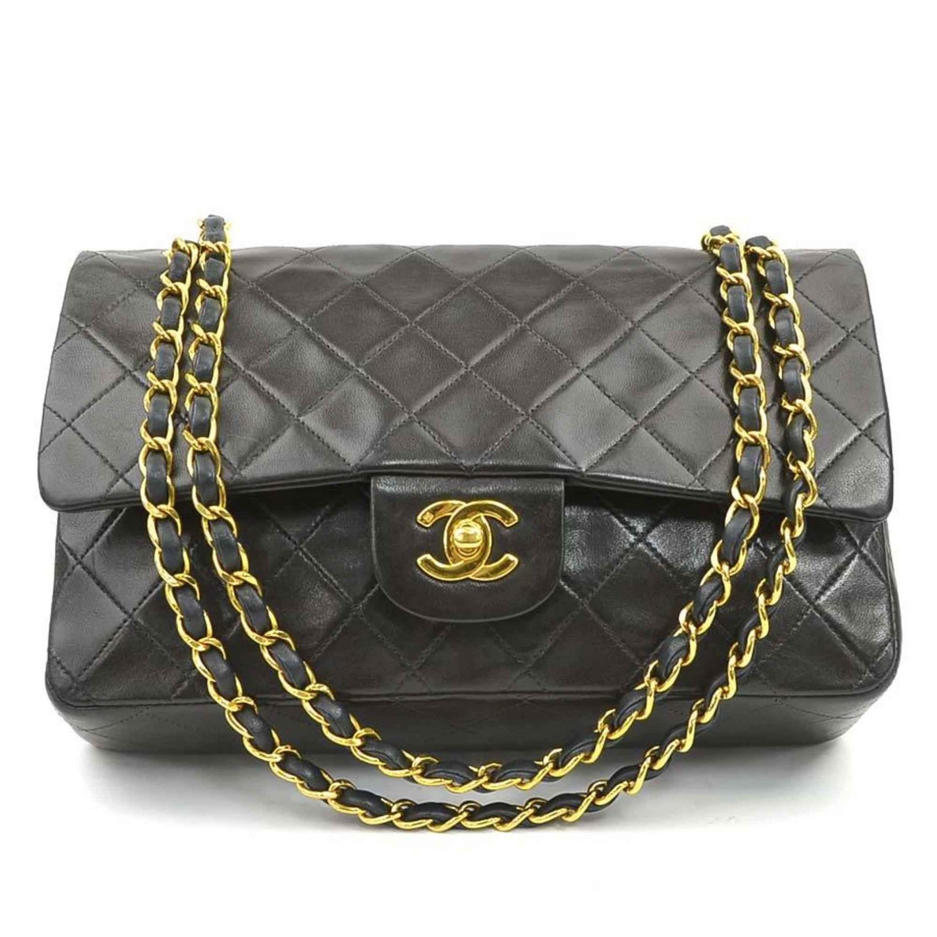CHANEL Matelasse Shoulder Bag with Double Flap, Leather, Metal, Black, and Gold, Women\'s, e60851a