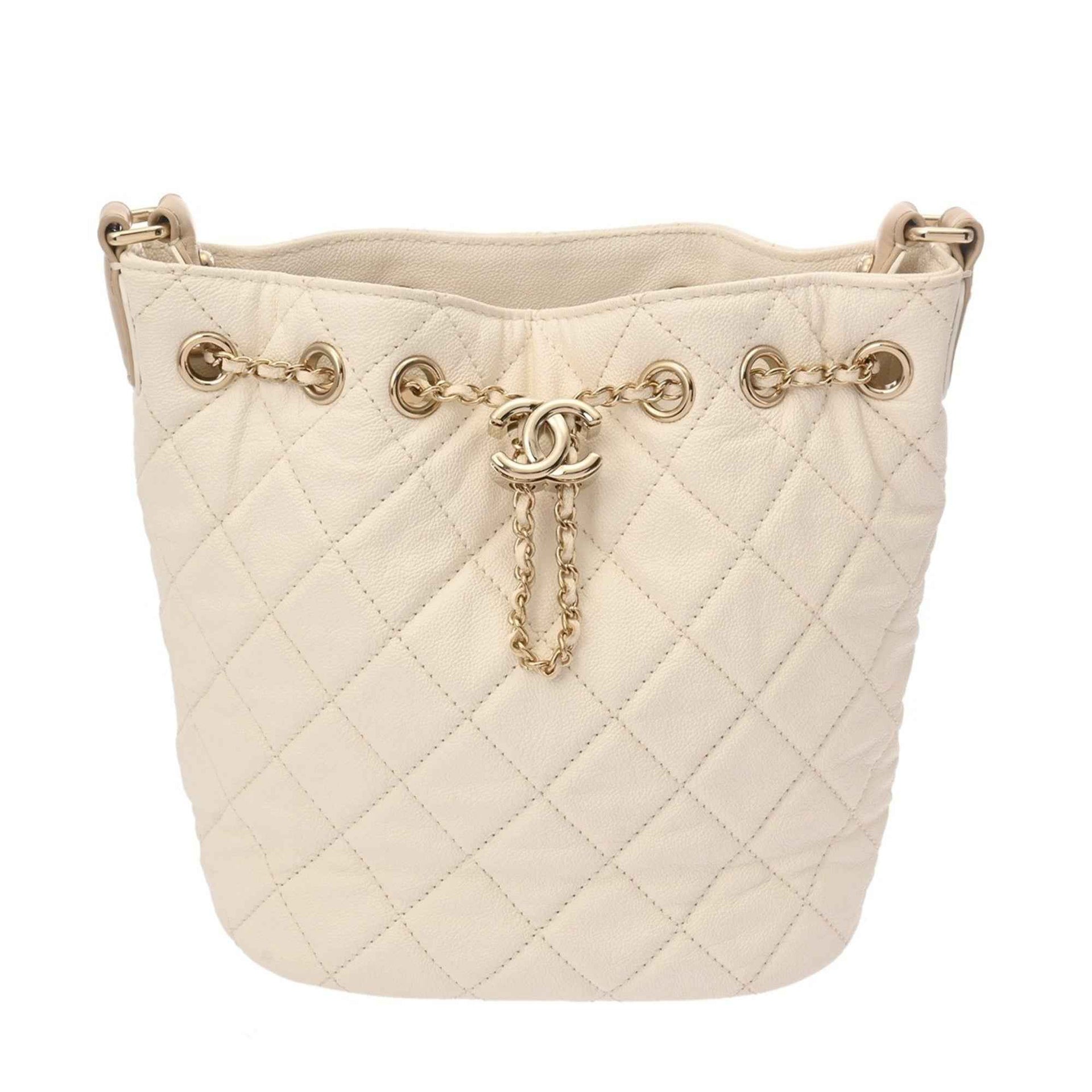 CHANEL Matelasse White Women\'s Soft Caviar Leather Shoulder Bag, Condition: B, Pre-owned, Ginzo
