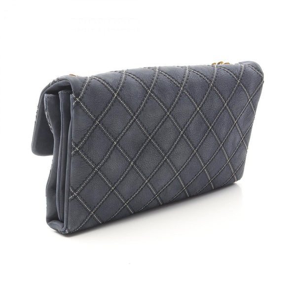 CHANEL Shoulder Bag, Calfskin Leather, Women\'s, Navy