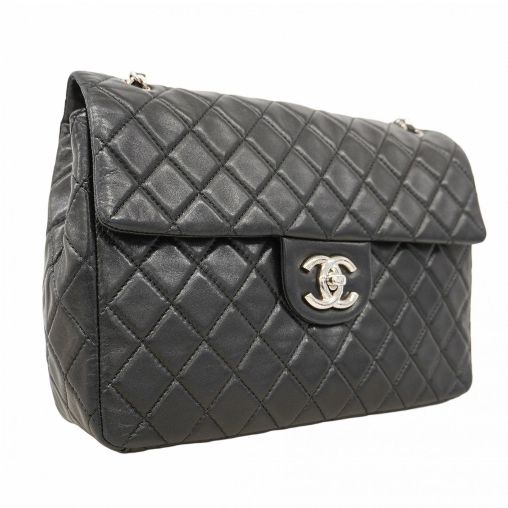 Chanel Shoulder Bag, Large Matelasse, Double Chain, Lambskin, Black, Women\'s