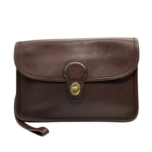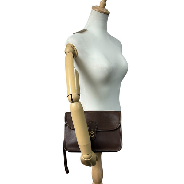 COACH Old Coach 2-Way Shoulder Bag 9971, Brown Glovetanned Leather with Turnlock Clutch, Made in USA