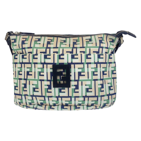 FENDI Zucca pattern FF logo green, pink, and navy canvas crossbody shoulder bag/messenger bag for women