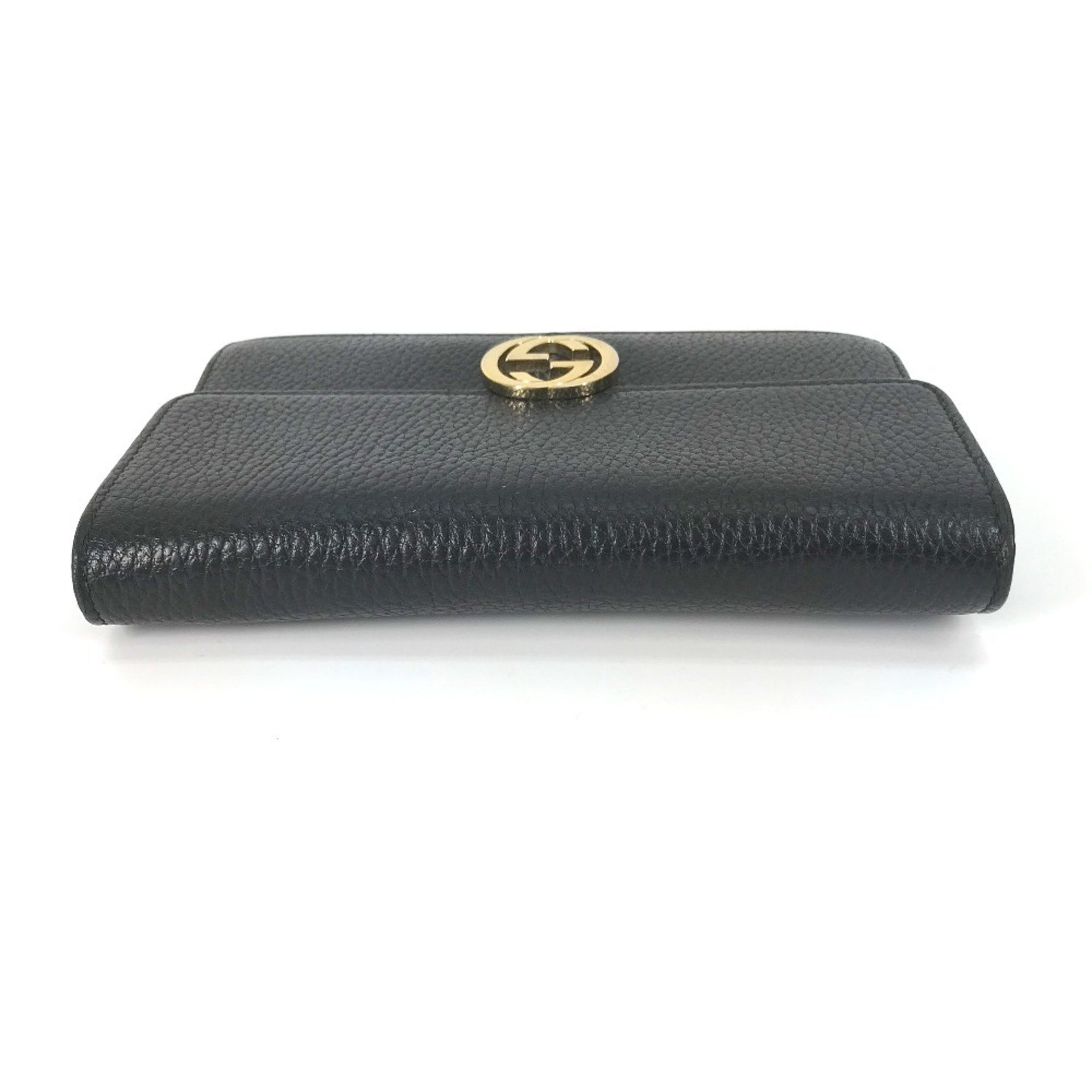 GUCCI 510314 Interlocking G Chain Wallet, 2-Way Clutch/Long Wallet/Shoulder Bag, Leather, Women\'s, Black