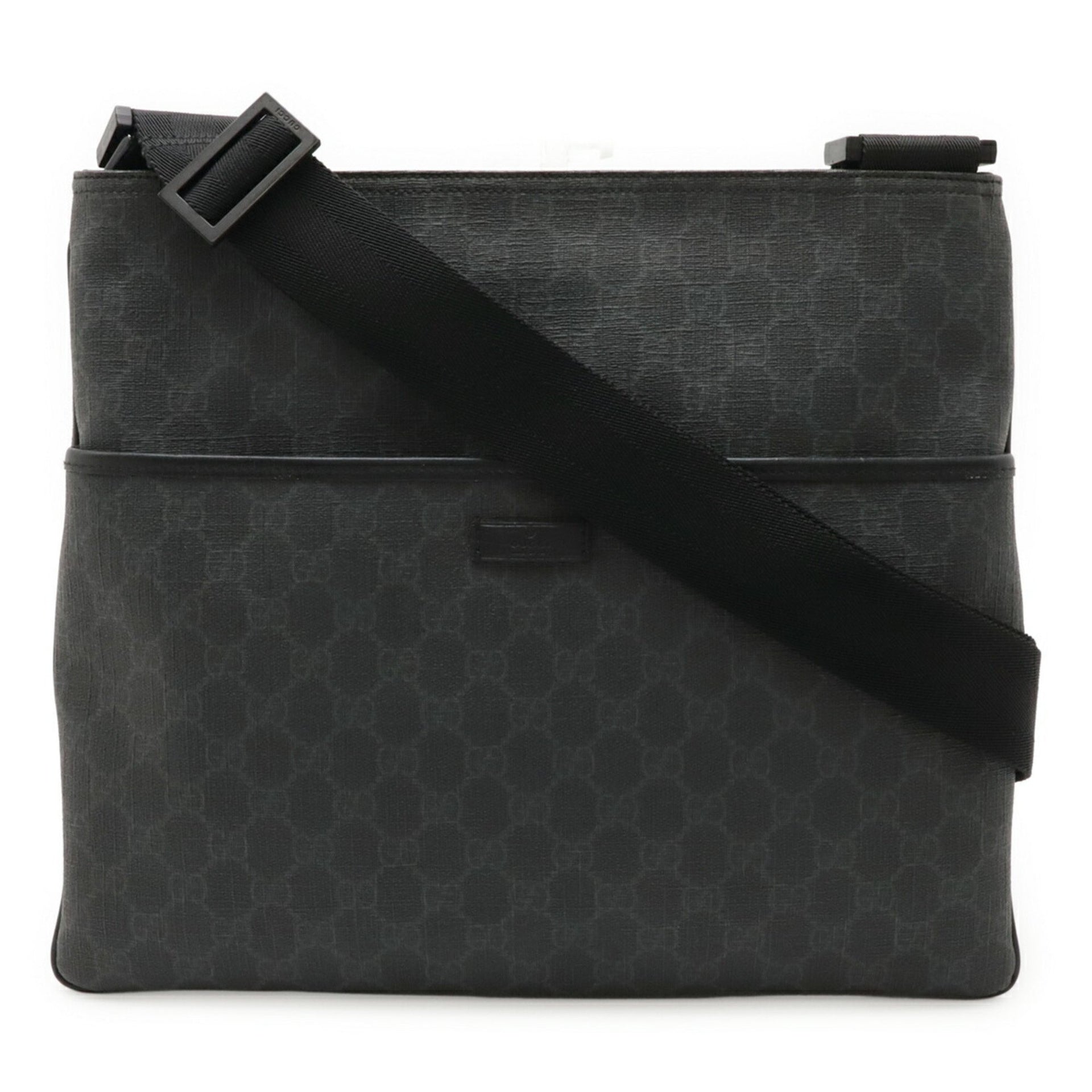 GUCCI GG Plus Supreme Shoulder Bag in PVC and Leather, Black Gray, 162904