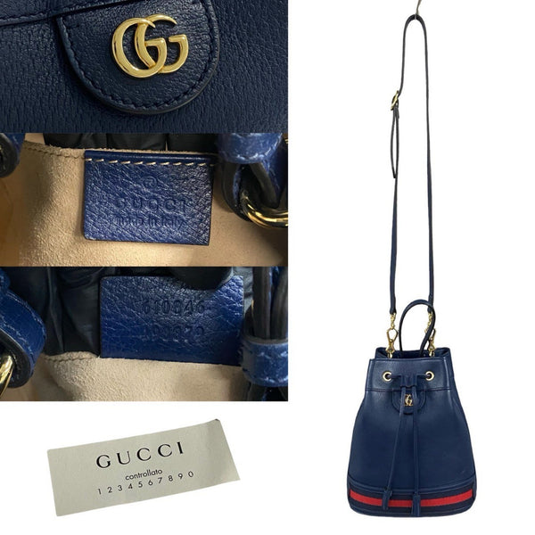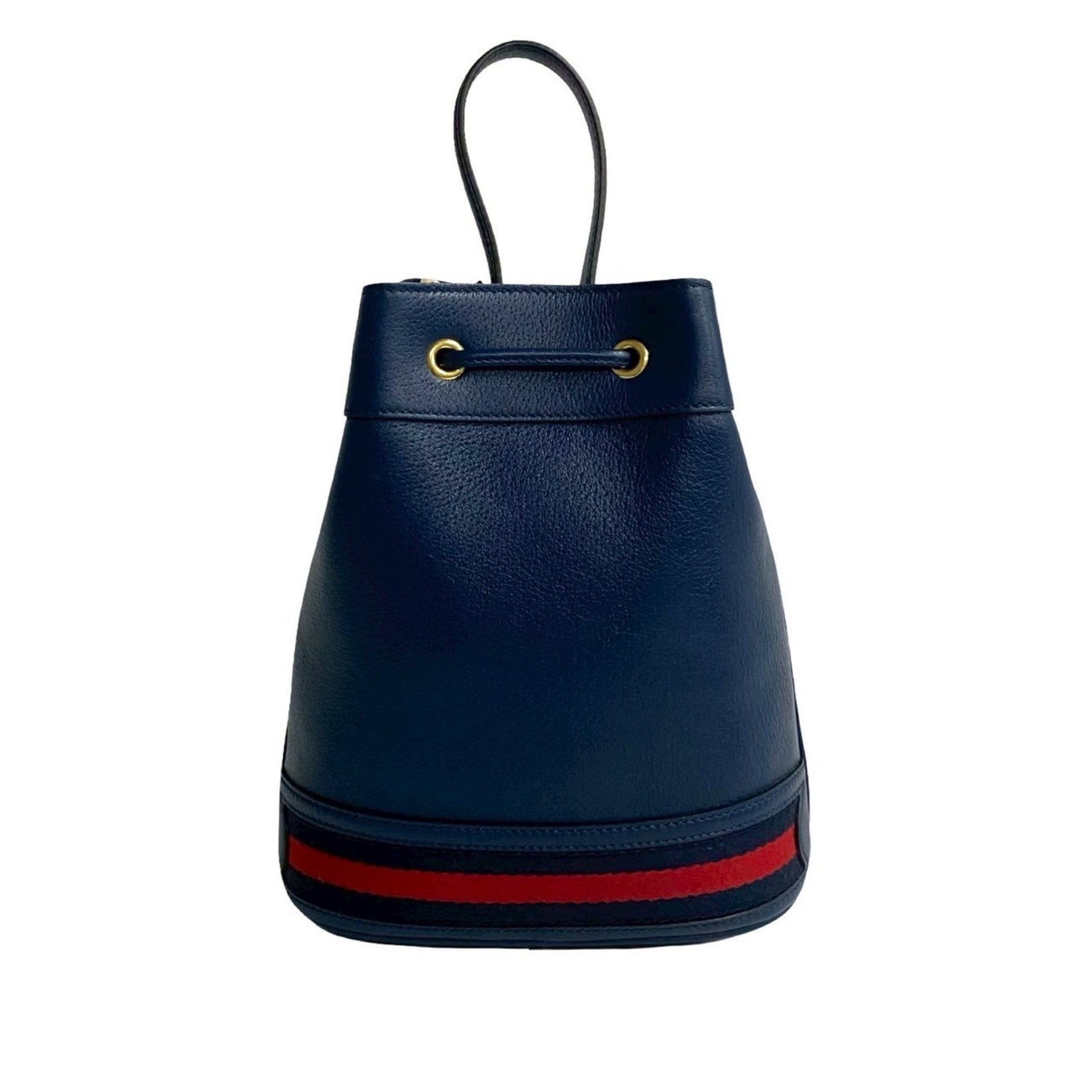 GUCCI Offdia Small Bucket Bag with GG Logo, Leather, 2-Way Drawstring, Handbag/Shoulder Bag, Navy, 59303