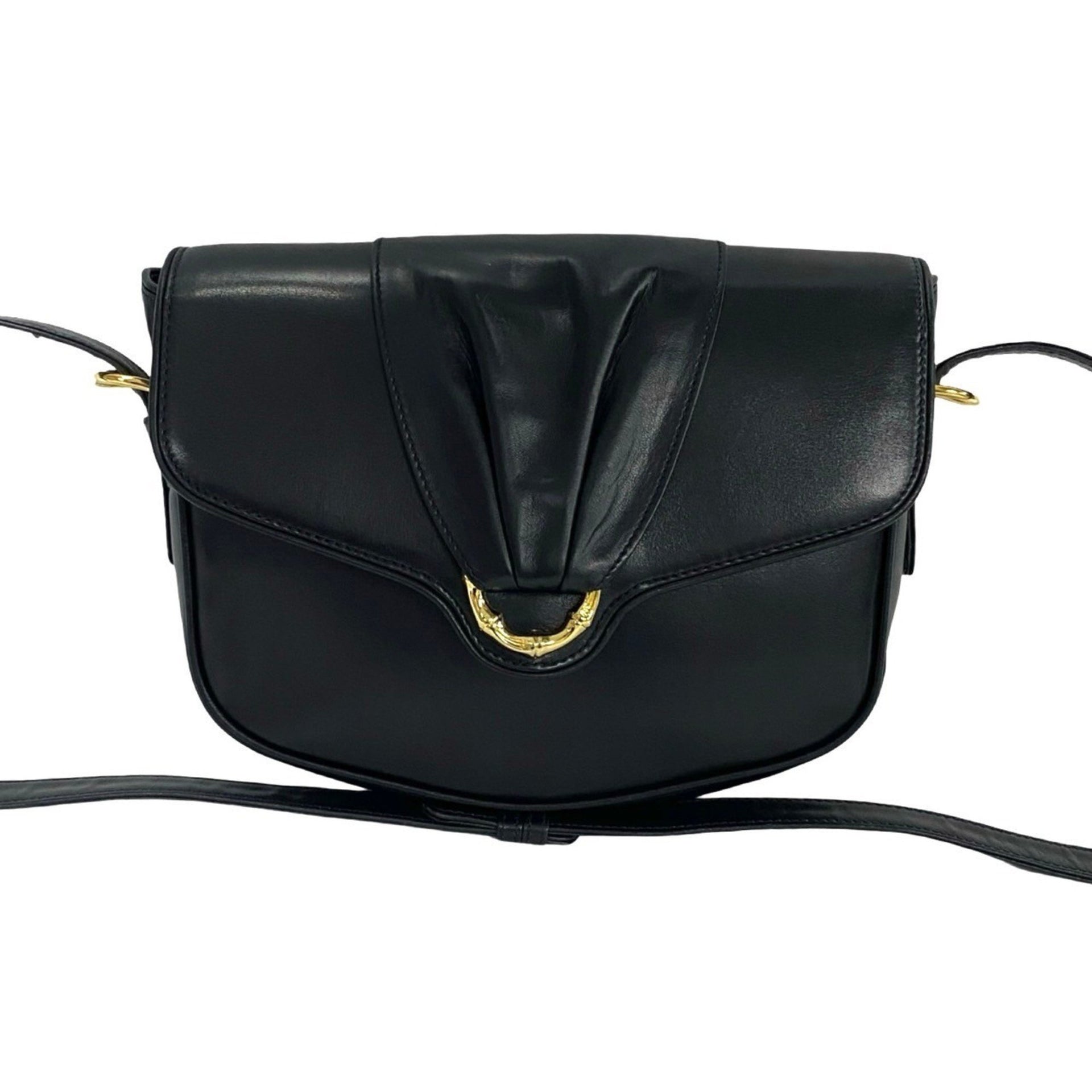 GUCCI Old Gucci Bamboo Hardware Leather Genuine Shoulder Bag Pochette Black 123-1