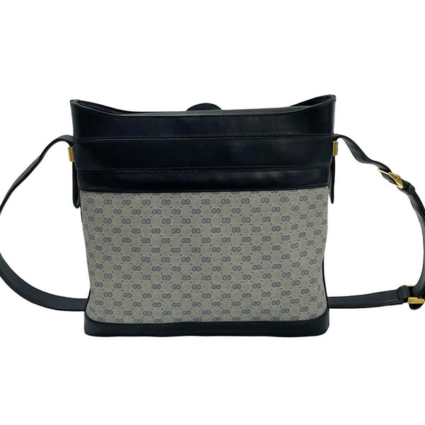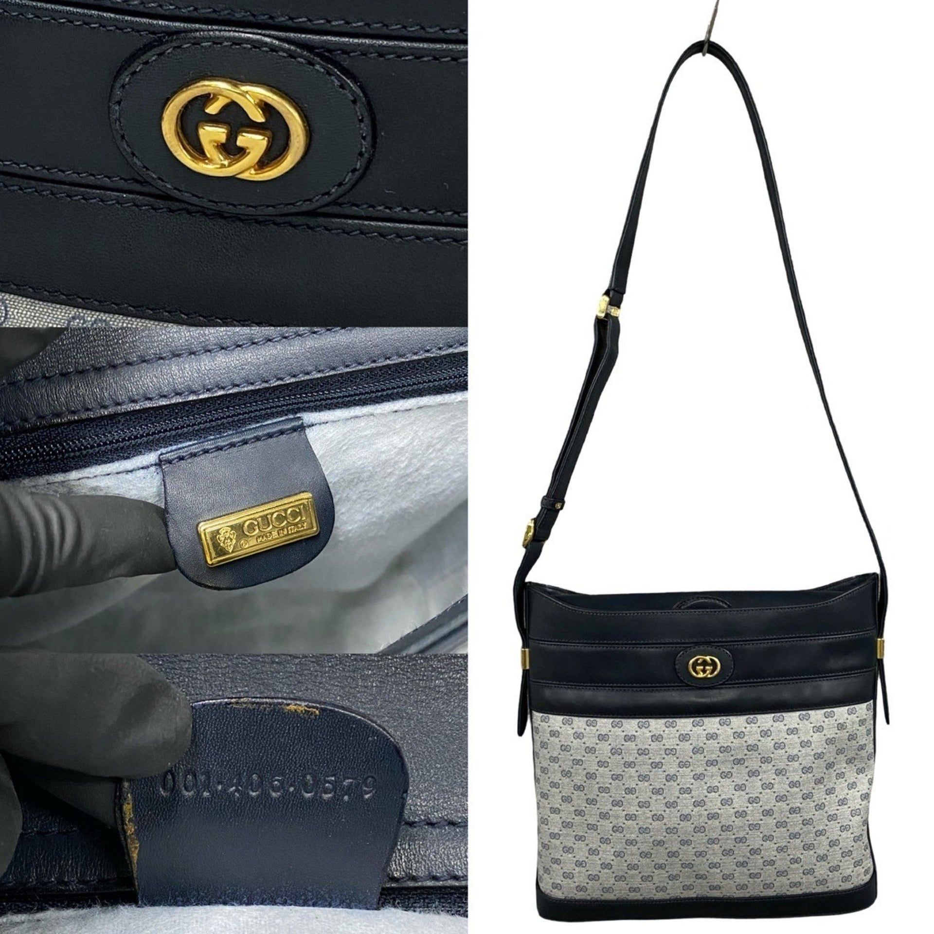 GUCCI Old Gucci Micro GG Logo Hardware Leather Genuine Shoulder Bag Pochette Navy 03913