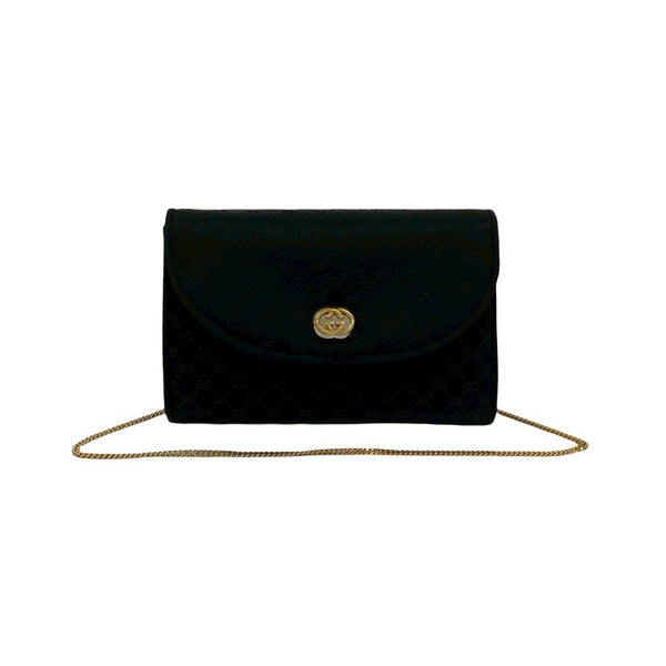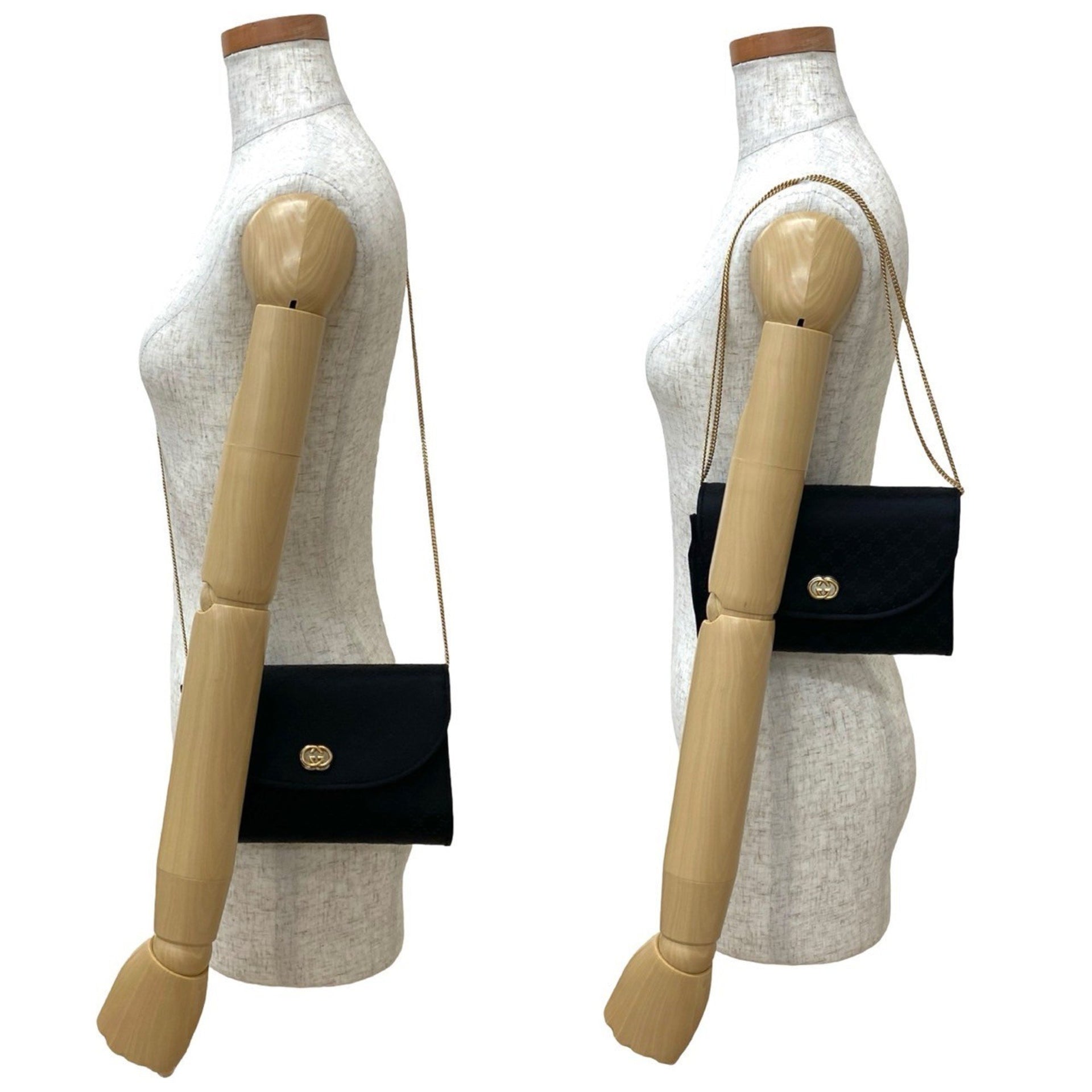 GUCCI Old Gucci Micro GG Logo Metal Satin Chain Shoulder Bag Black 65882