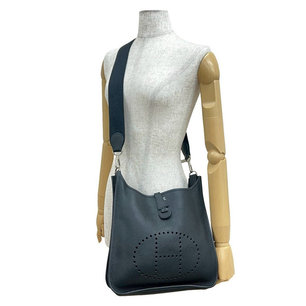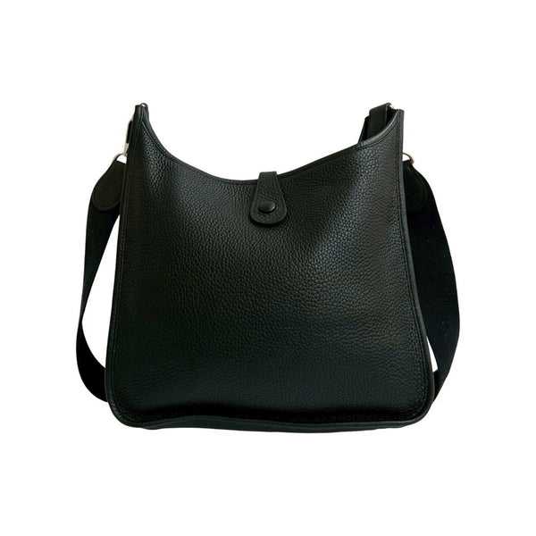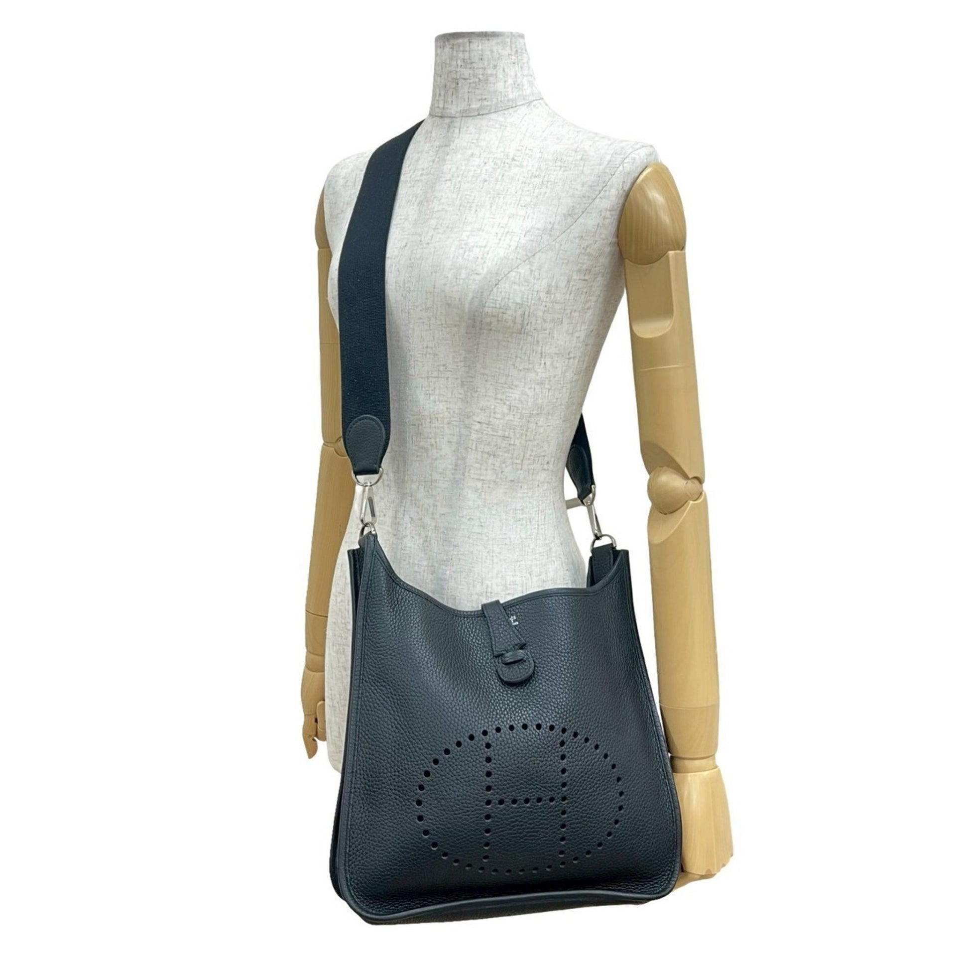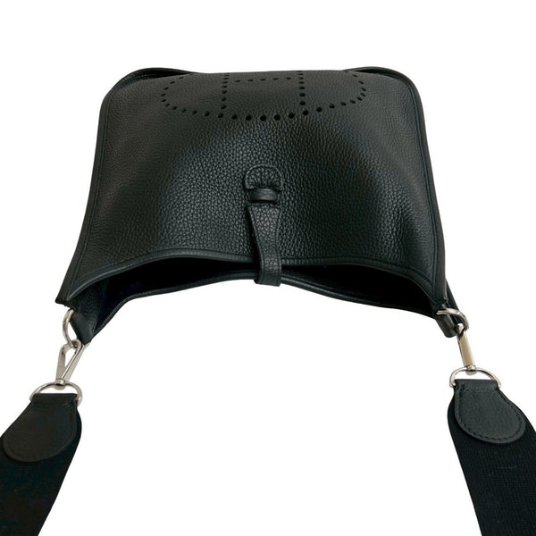 □H Stamp HERMES Evelyn II PM Logo Taurillon Clemence Leather Shoulder Bag Pochette Black 26773