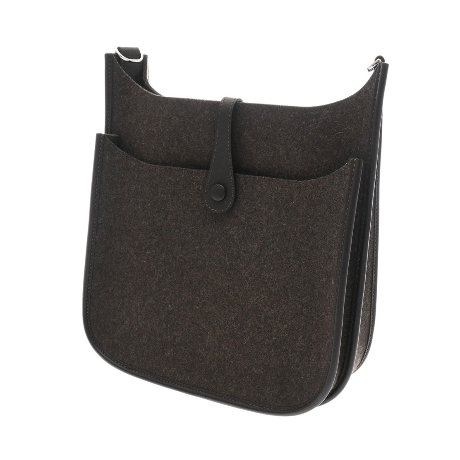 HERMES Evelyne 3 PM Grimoire Chocolat Z Stamp (circa 2021) Women\'s Felt Swift Shoulder Bag, A Rank, Pre-owned, Ginzo