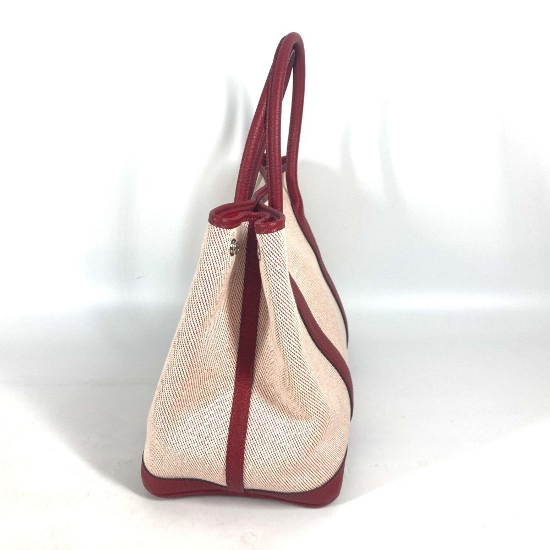 HERMES Garden Party PM Shoulder Bag, Handbag, Tote Toile H/Negonda, Women\'s, Ecru x Rouge H, Red